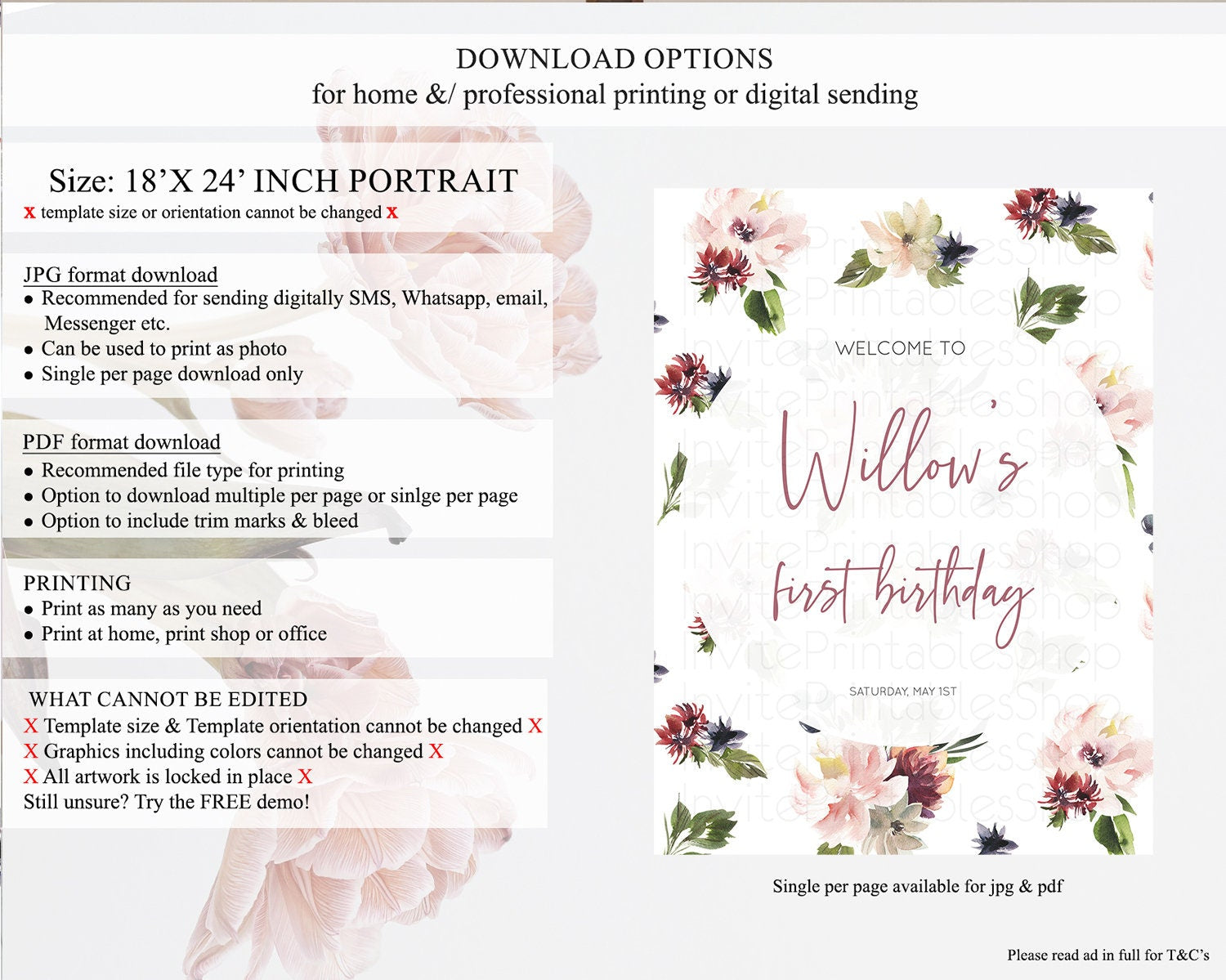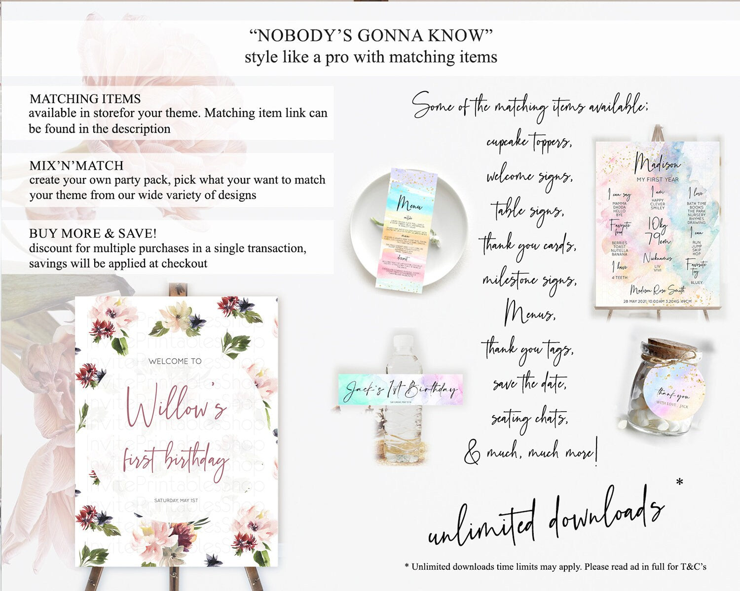Secret Garden Welcome Sign Wildflower Welcome Board Pastel Flower Garden Welcome Poster Boho Wildflower First Birthday Welcome Sign D10538