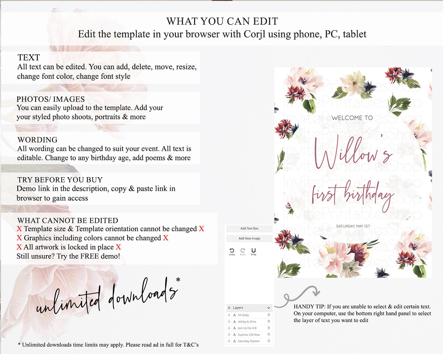 • After purchase, Corjl emails your editing link. Allow up to 15 minutes for delivery.