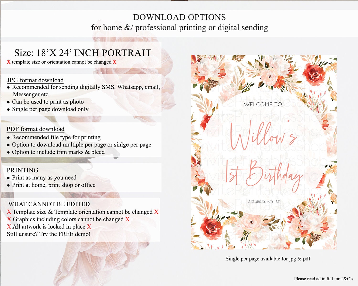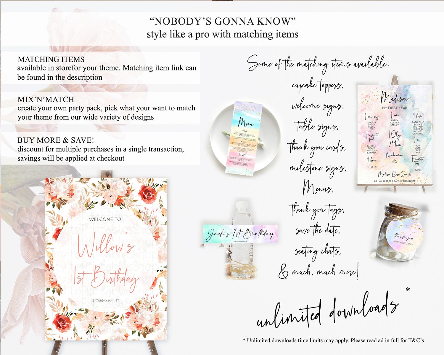 Secret Garden Welcome Sign Wildflower Welcome Board Pastel Flower Garden Welcome Poster Boho Wildflower First Birthday Welcome Sign D10540