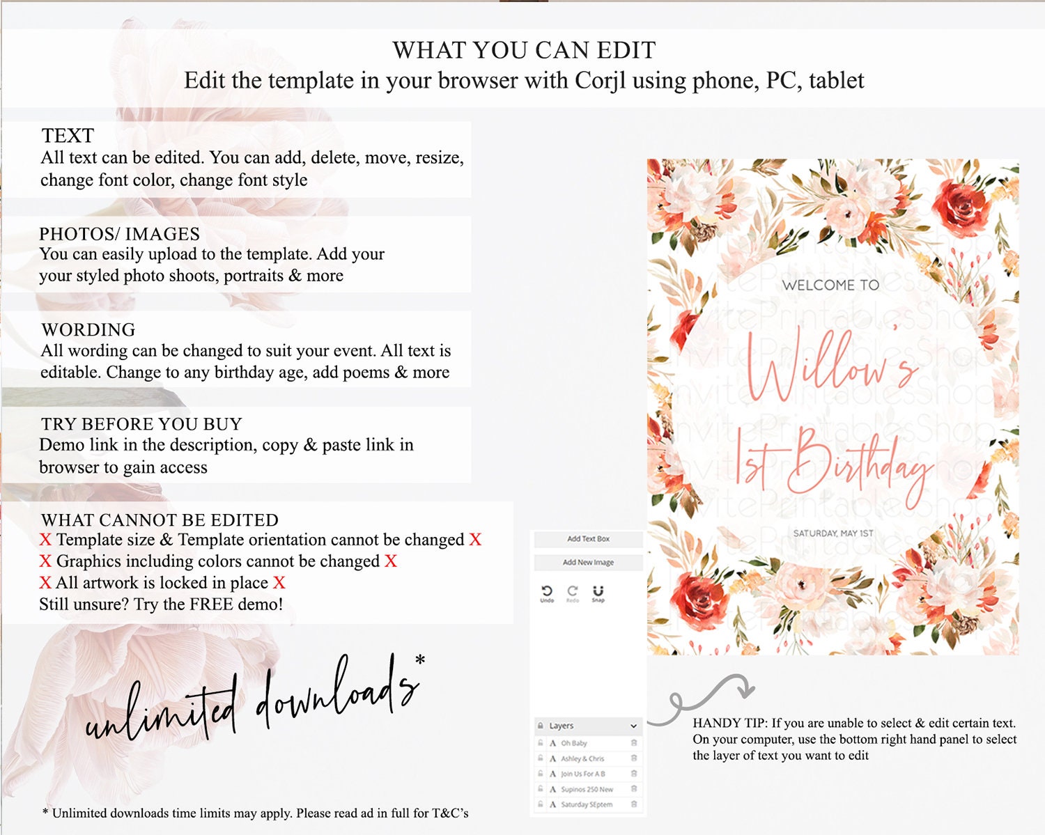 • After purchase, Corjl emails your editing link. Allow up to 15 minutes for delivery.