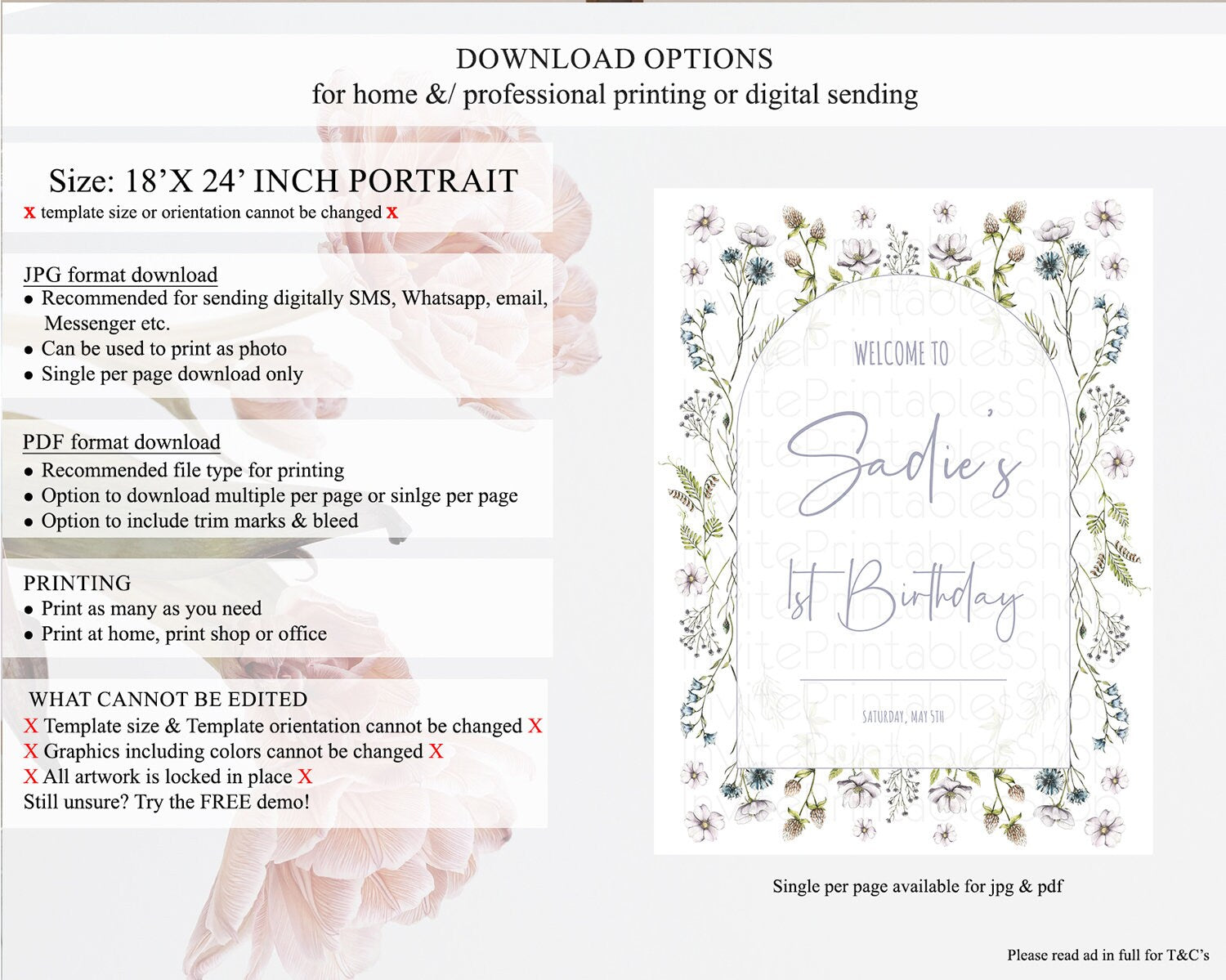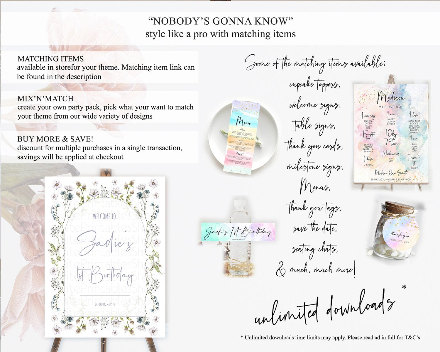 Secret Garden Welcome Sign Wildflower Welcome Board Pastel Flower Garden Welcome Poster Boho Wildflower First Birthday Welcome Sign D10603