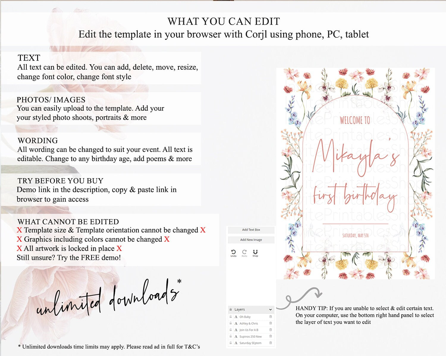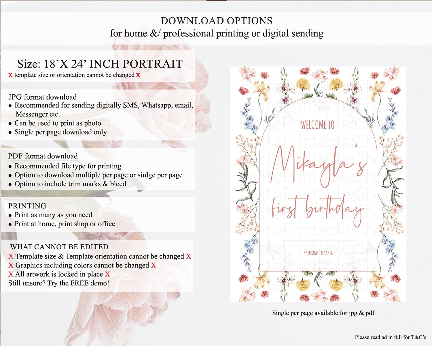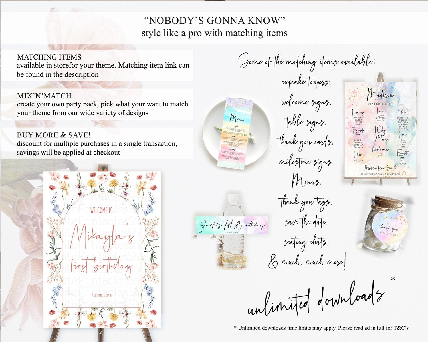 Secret Garden Welcome Sign Wildflower Welcome Board Pastel Flower Garden Welcome Poster Boho Wildflower First Birthday Welcome Sign D10682