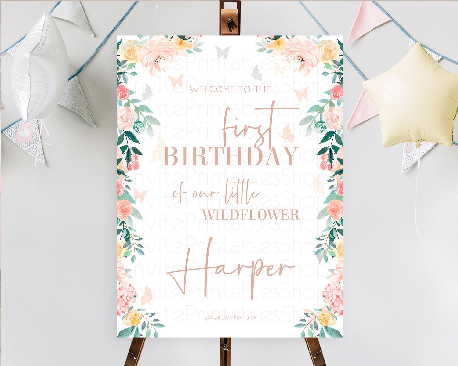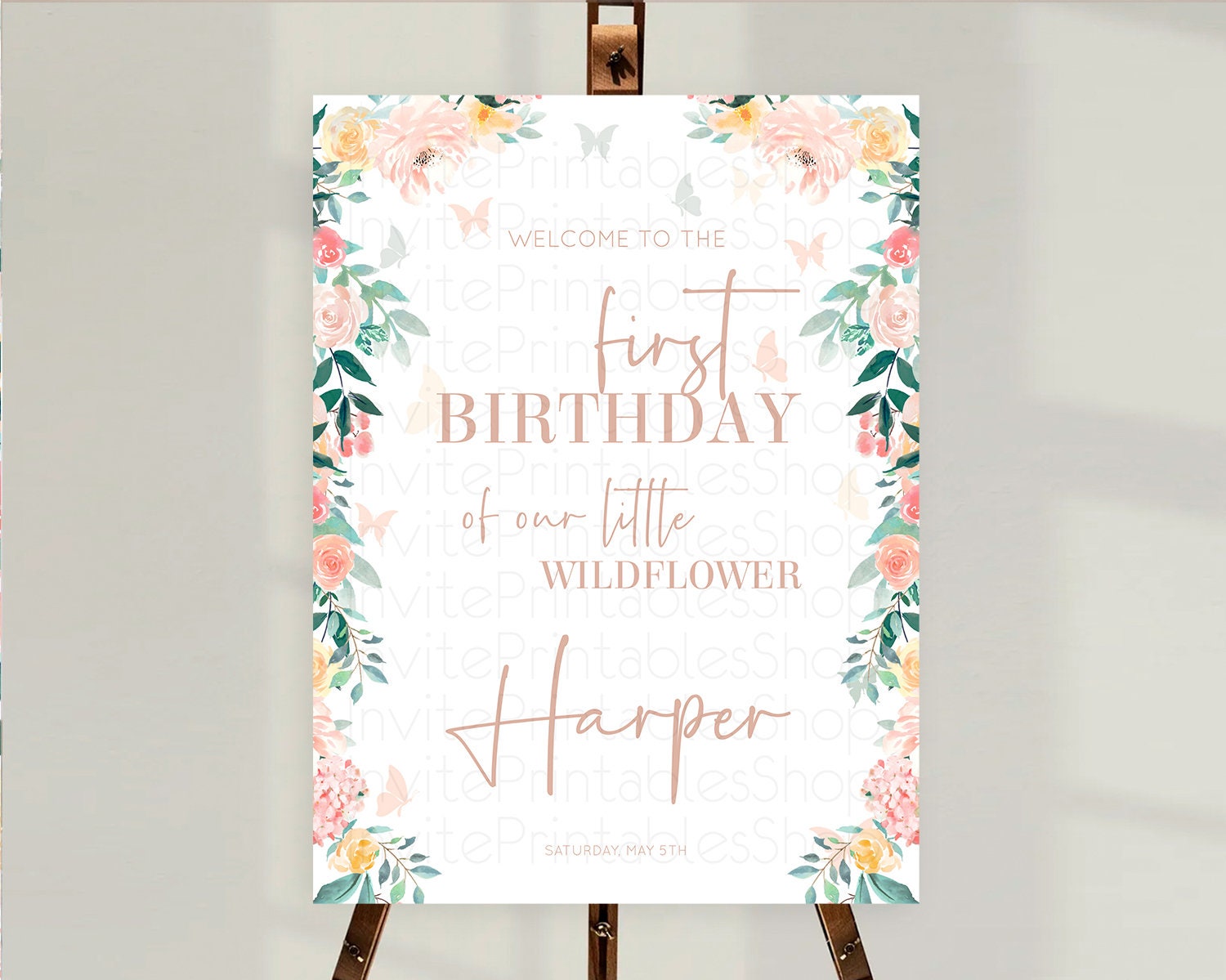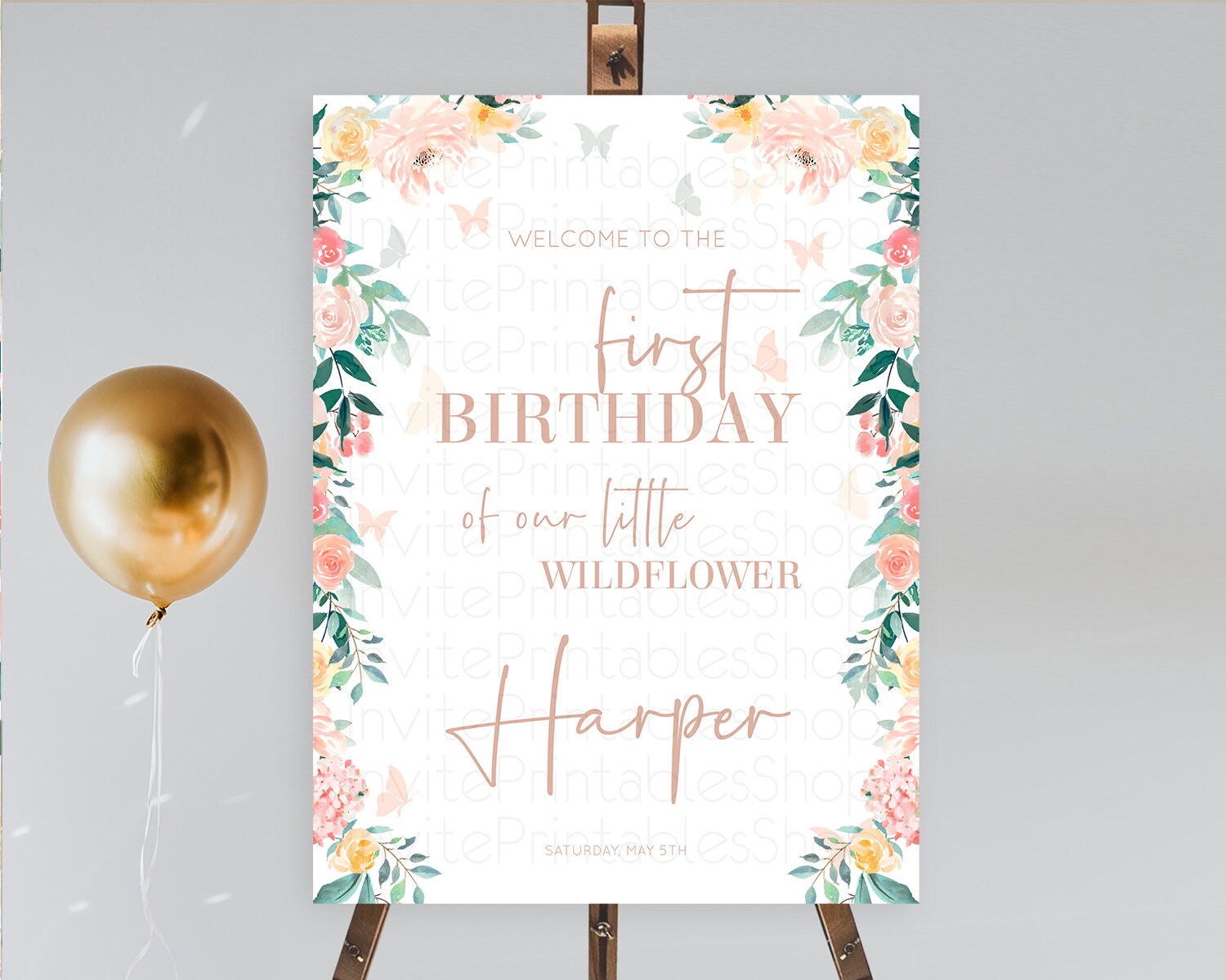 Secret Garden Welcome Sign Wildflower Welcome Board Pastel Flower Garden Welcome Poster Boho Wildflower First Birthday Welcome Sign D10706
