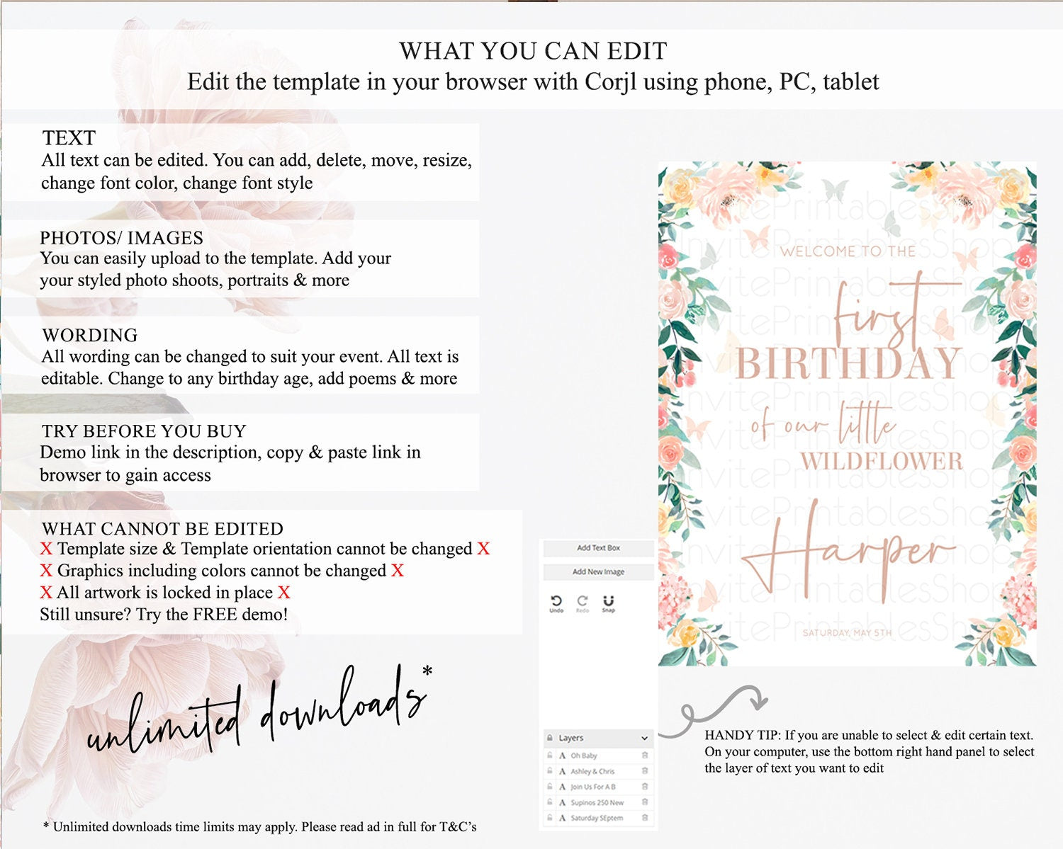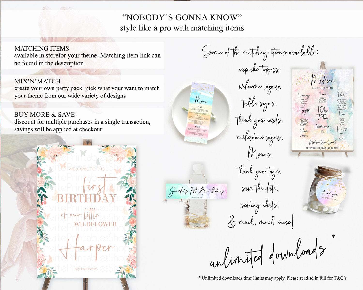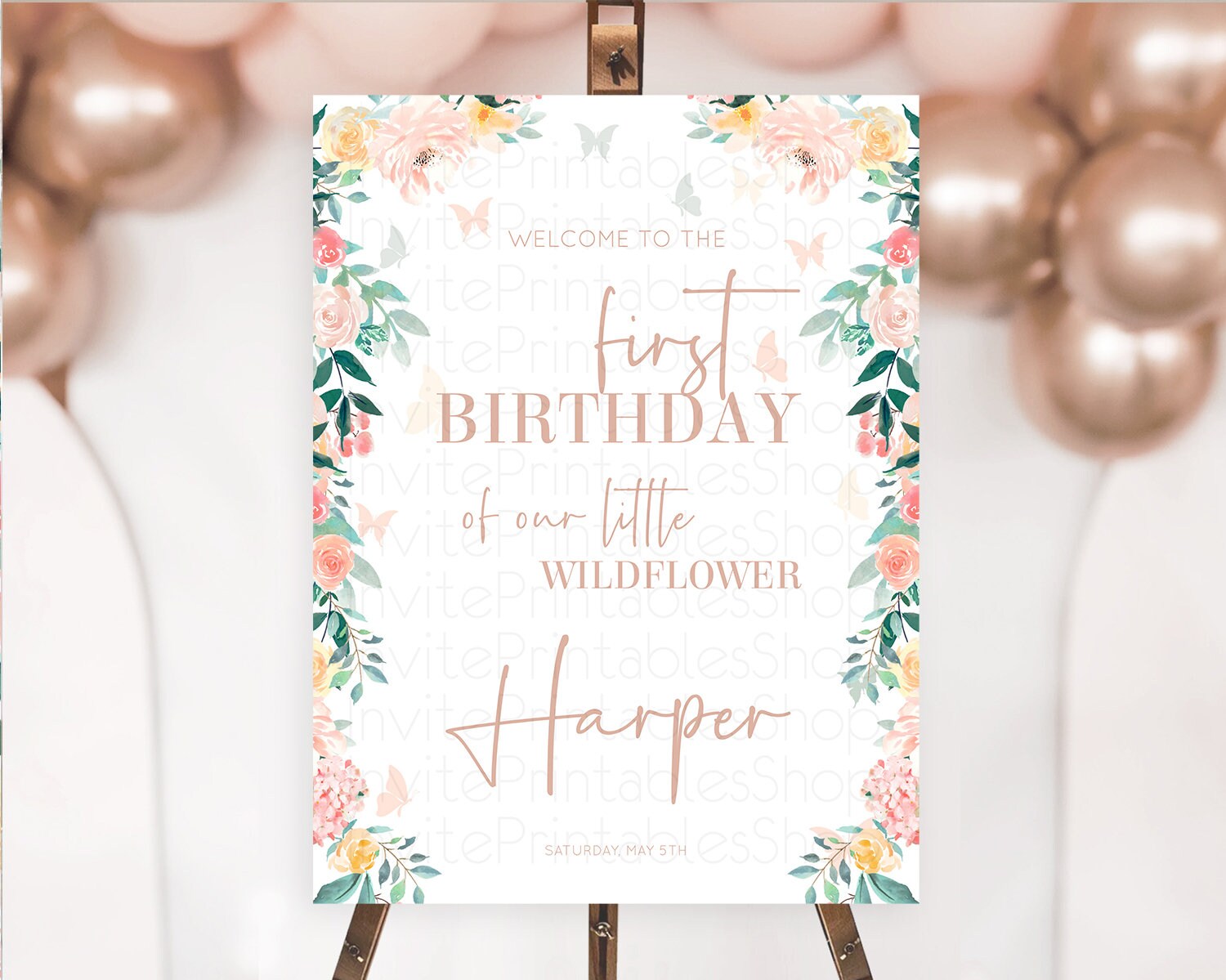 Secret Garden Welcome Sign Wildflower Welcome Board Pastel Flower Garden Welcome Poster Boho Wildflower First Birthday Welcome Sign D10706