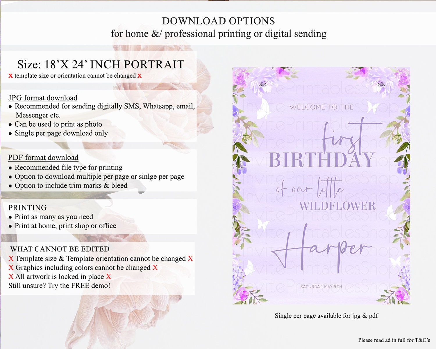 • Template size & orientation cannot be changed. Please use the demo link to confirm this product suits your needs.