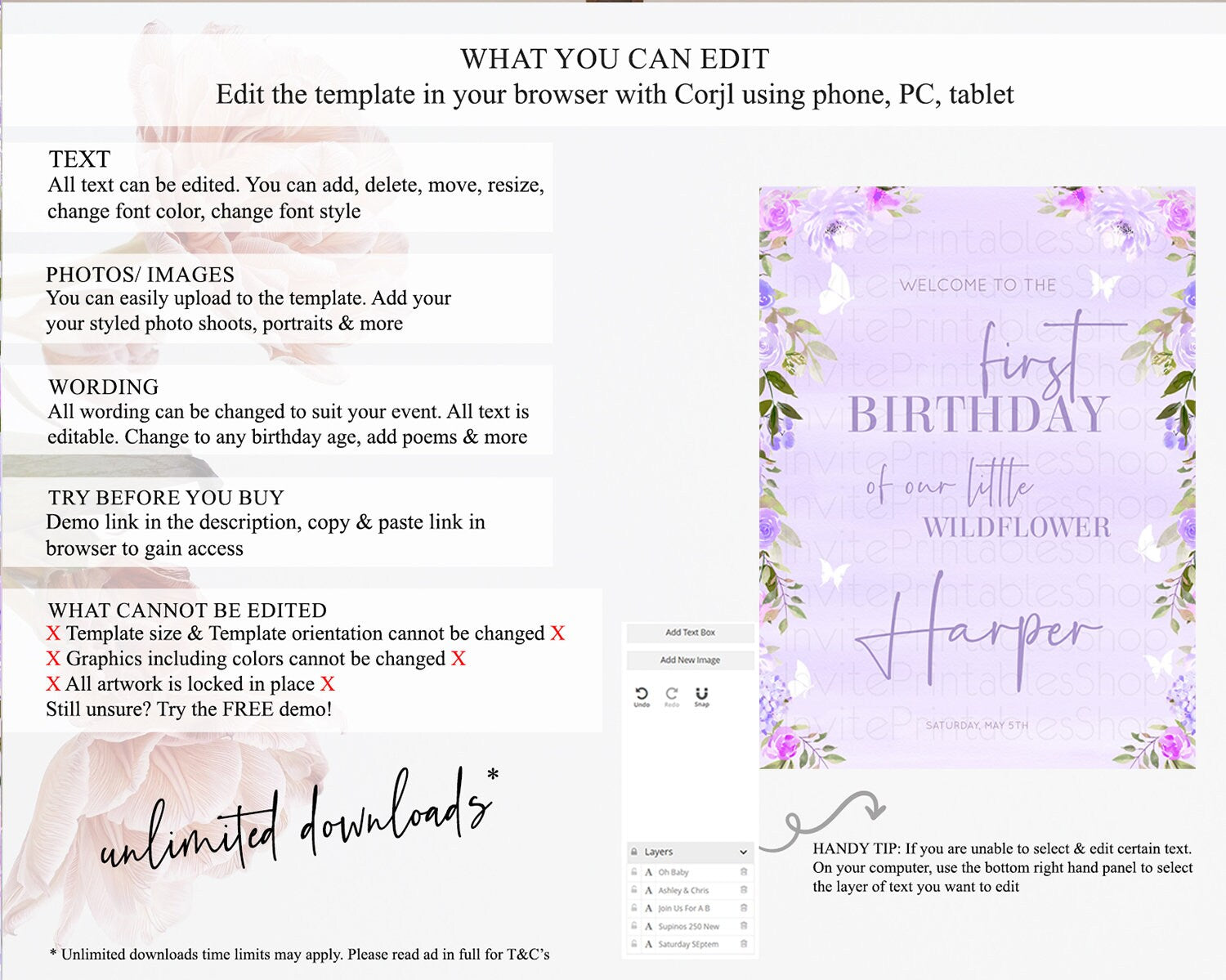 • After purchase, Corjl emails your editing link. Allow up to 15 minutes for delivery.