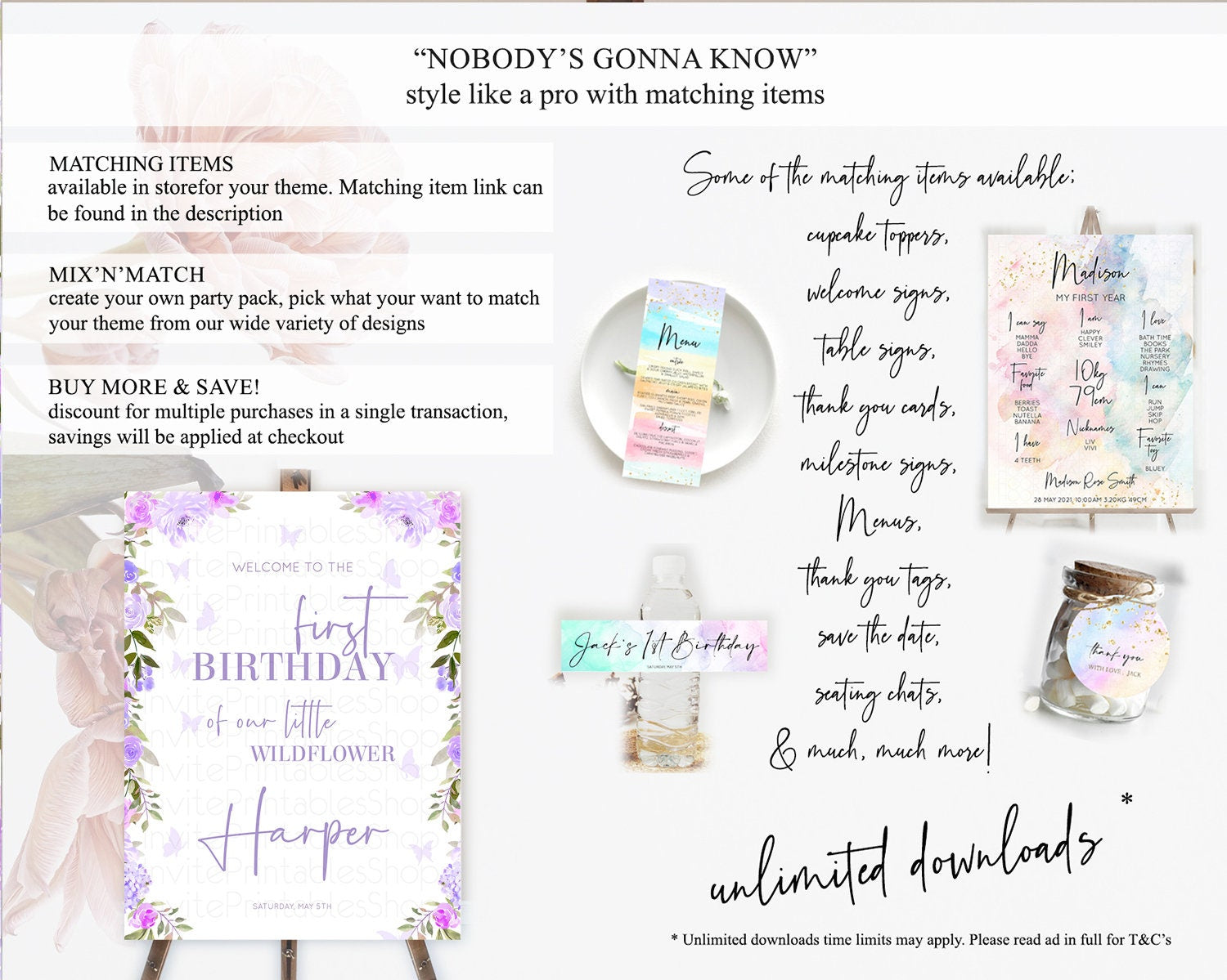 Secret Garden Welcome Sign Wildflower Welcome Board Pastel Flower Garden Welcome Poster Boho Wildflower First Birthday Welcome Sign D10719