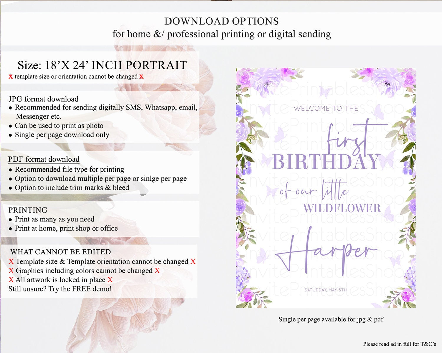 • Template size & orientation cannot be changed. Please use the demo link to confirm this product suits your needs.