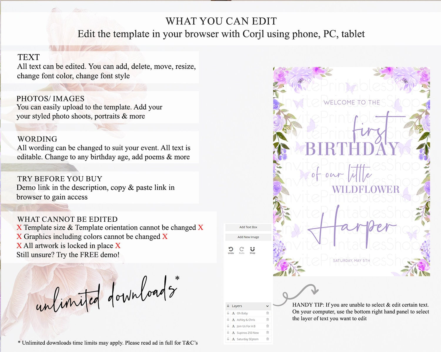 • After purchase, Corjl emails your editing link. Allow up to 15 minutes for delivery.
