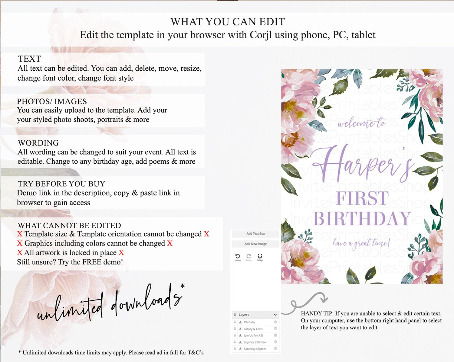 • After purchase, Corjl emails your editing link. Allow up to 15 minutes for delivery.
