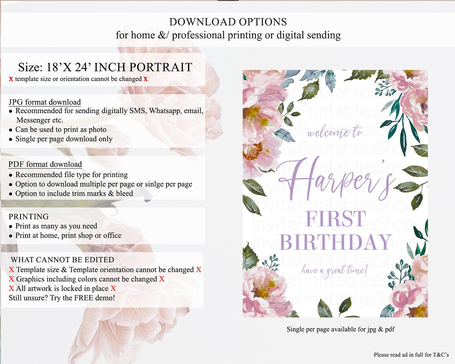• Template size & orientation cannot be changed. Please use the demo link to confirm this product suits your needs.