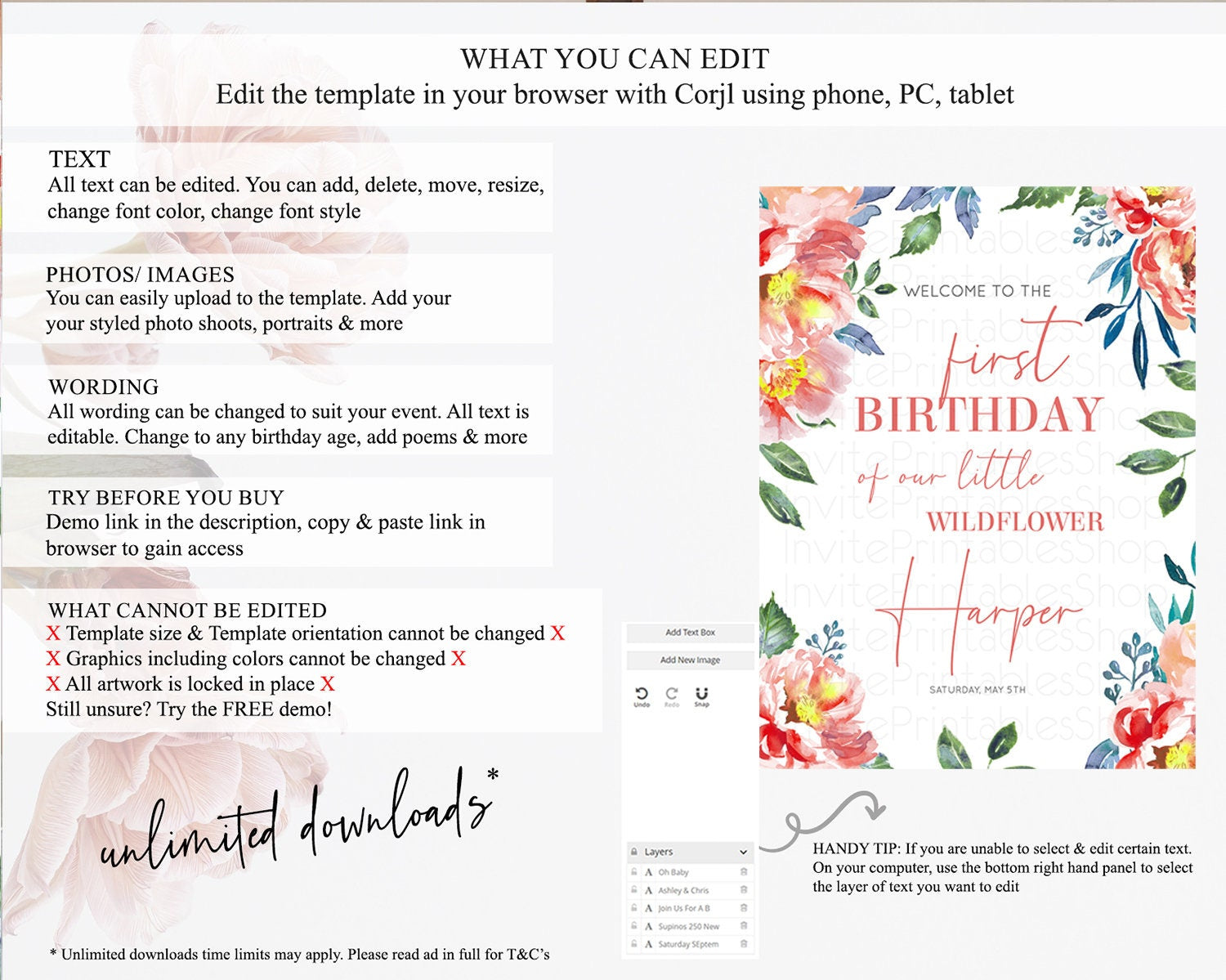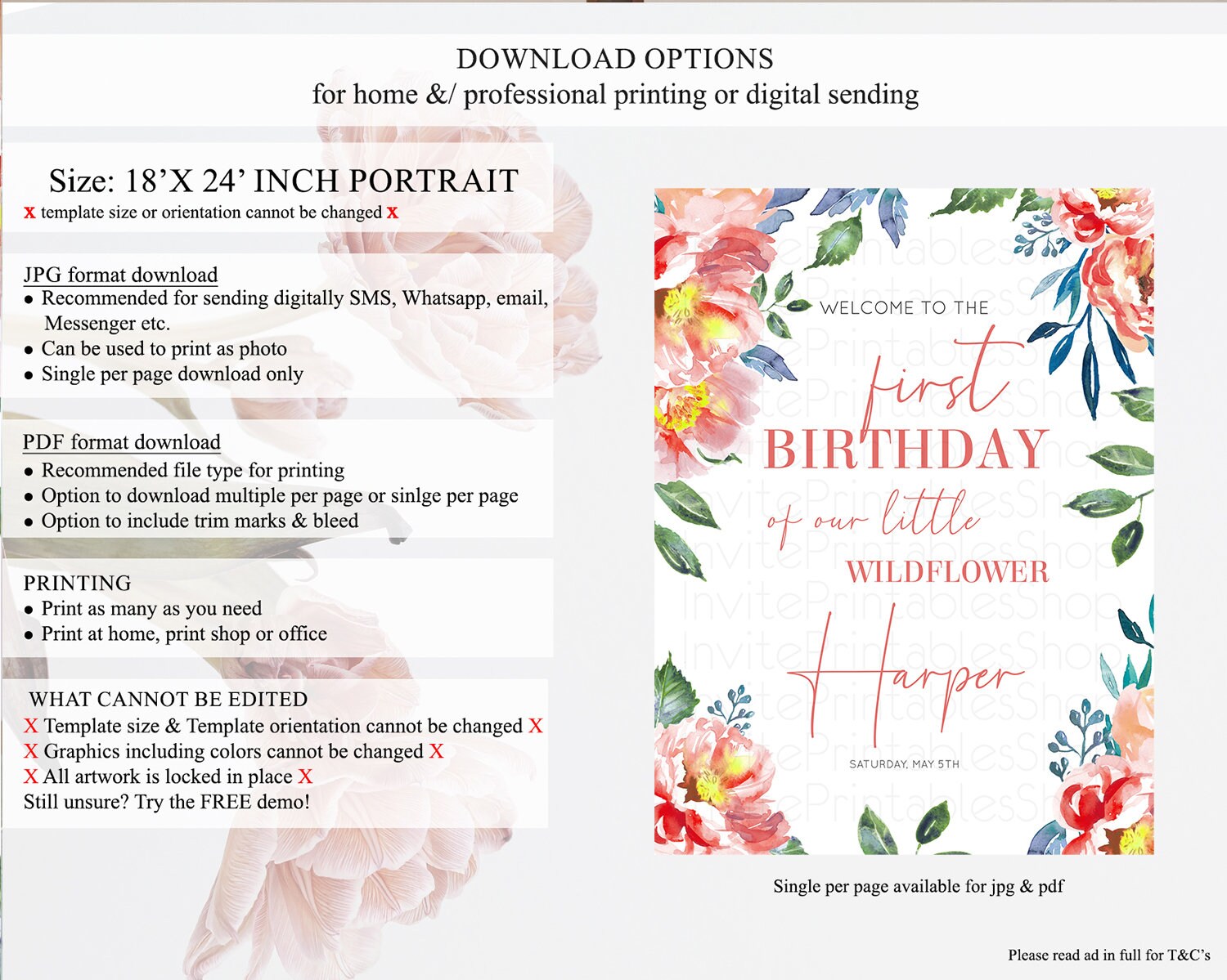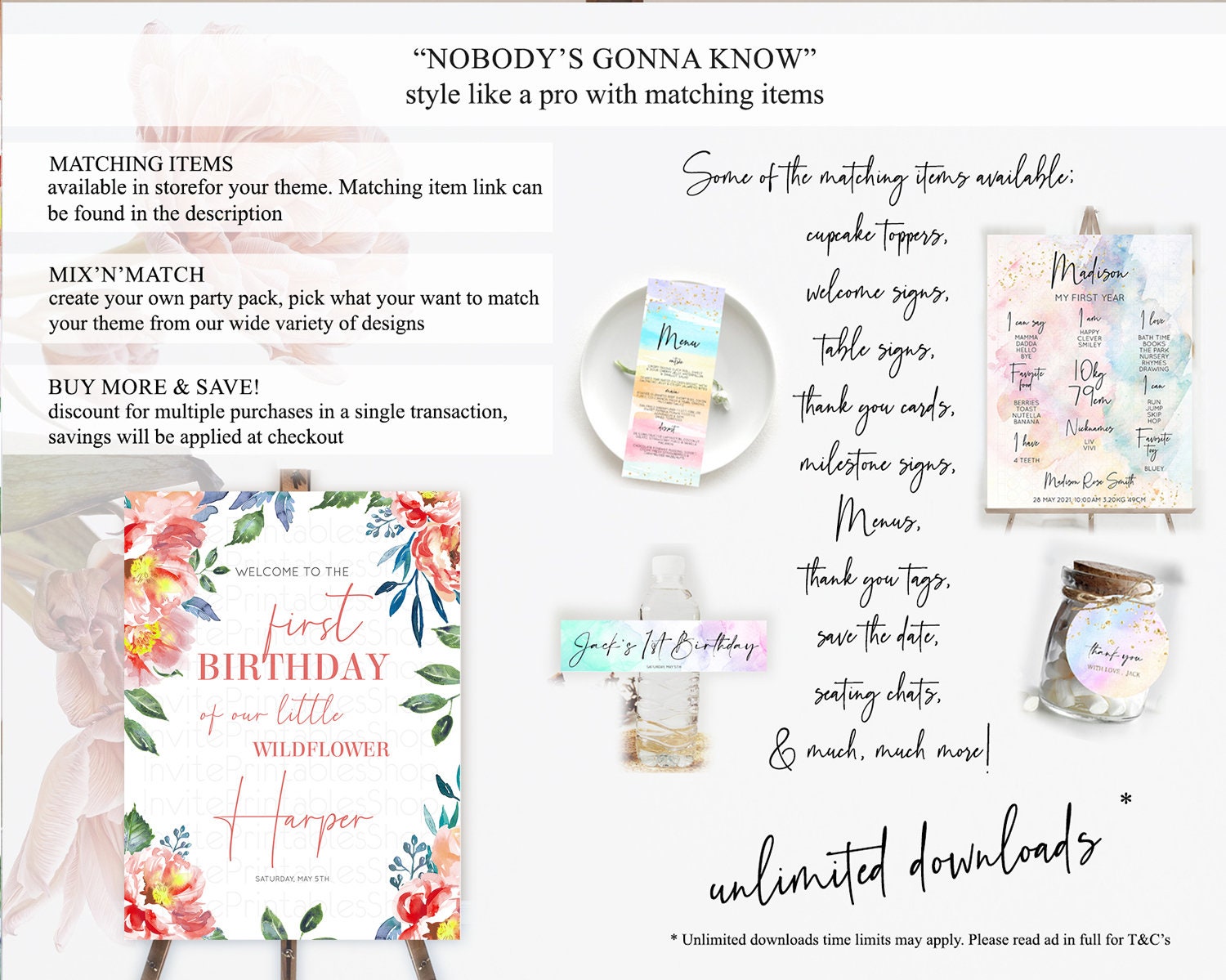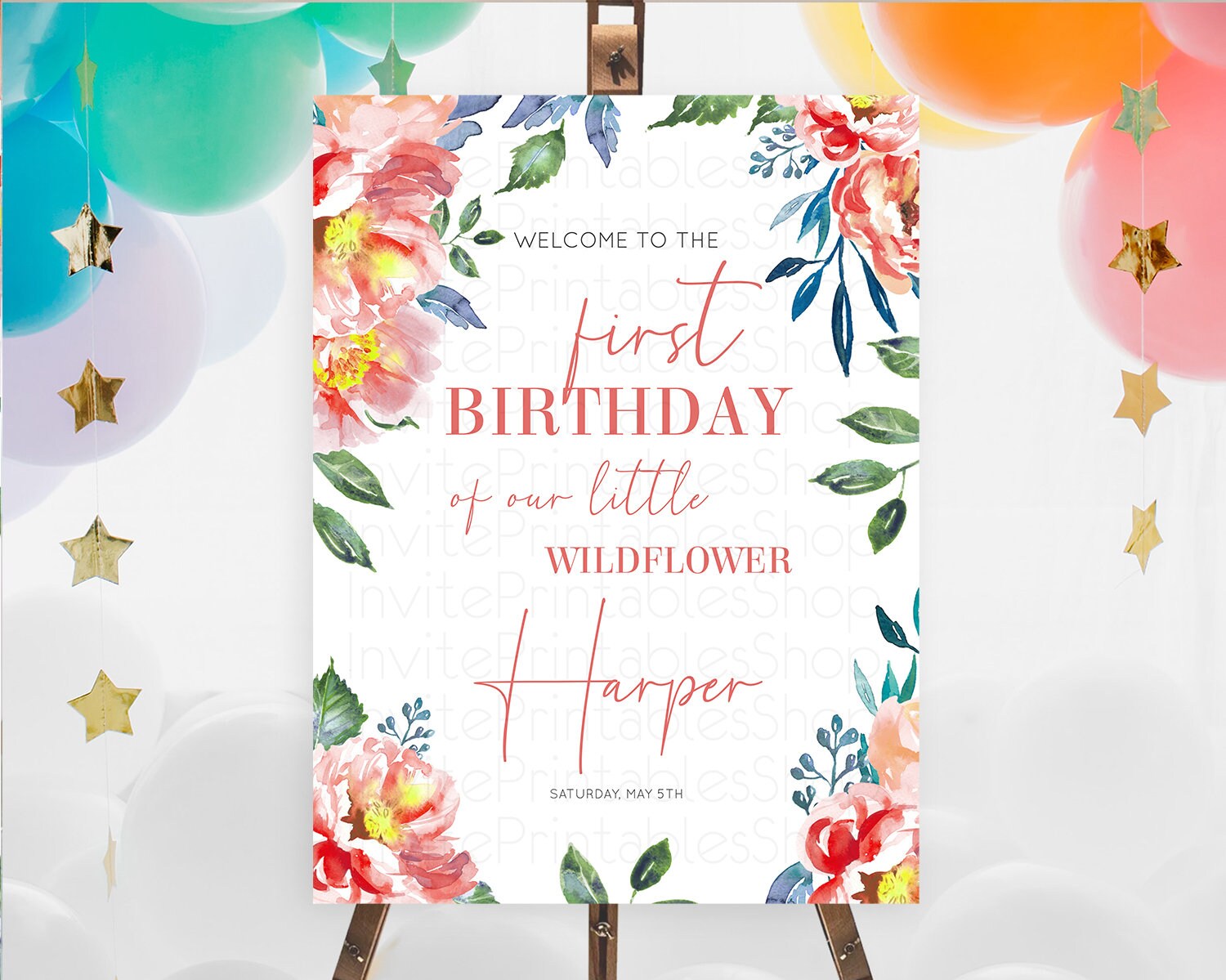 Secret Garden Welcome Sign Wildflower Welcome Board Pastel Flower Garden Welcome Poster Boho Wildflower First Birthday Welcome Sign D10751