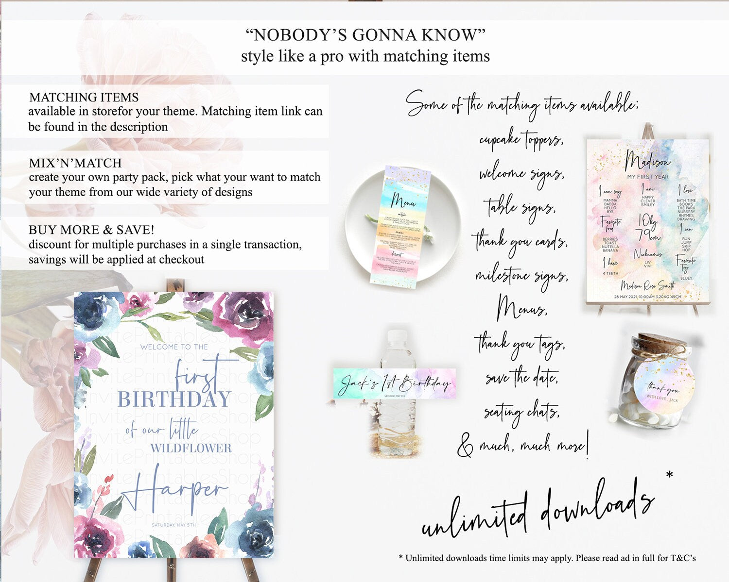 Secret Garden Welcome Sign Wildflower Welcome Board Pastel Flower Garden Welcome Poster Boho Wildflower First Birthday Welcome Sign D10780