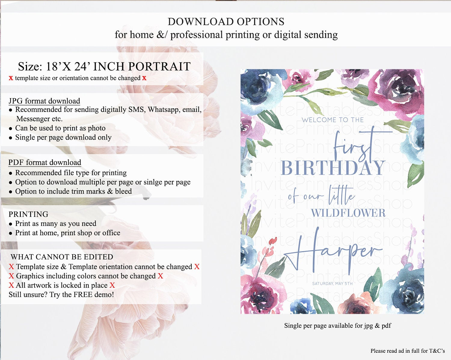 • Template size & orientation cannot be changed. Please use the demo link to confirm this product suits your needs.