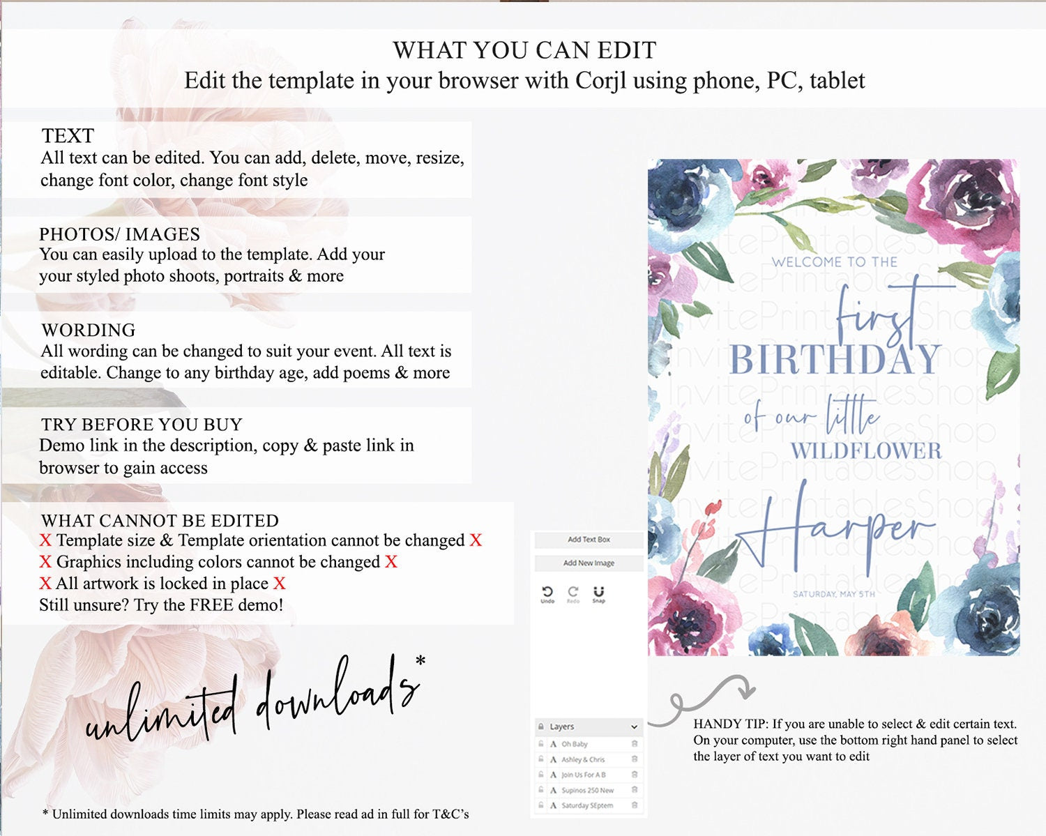 • After purchase, Corjl emails your editing link. Allow up to 15 minutes for delivery.