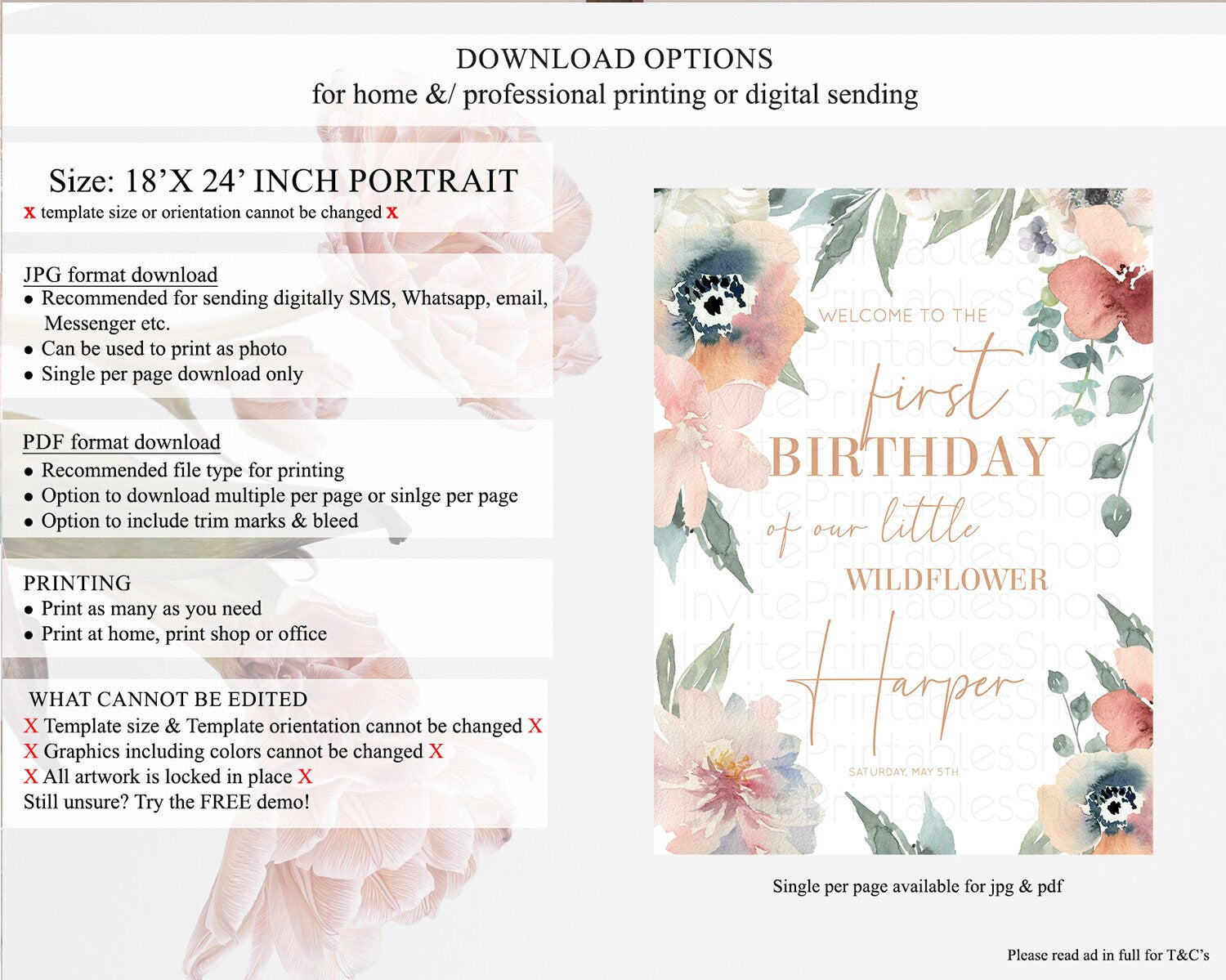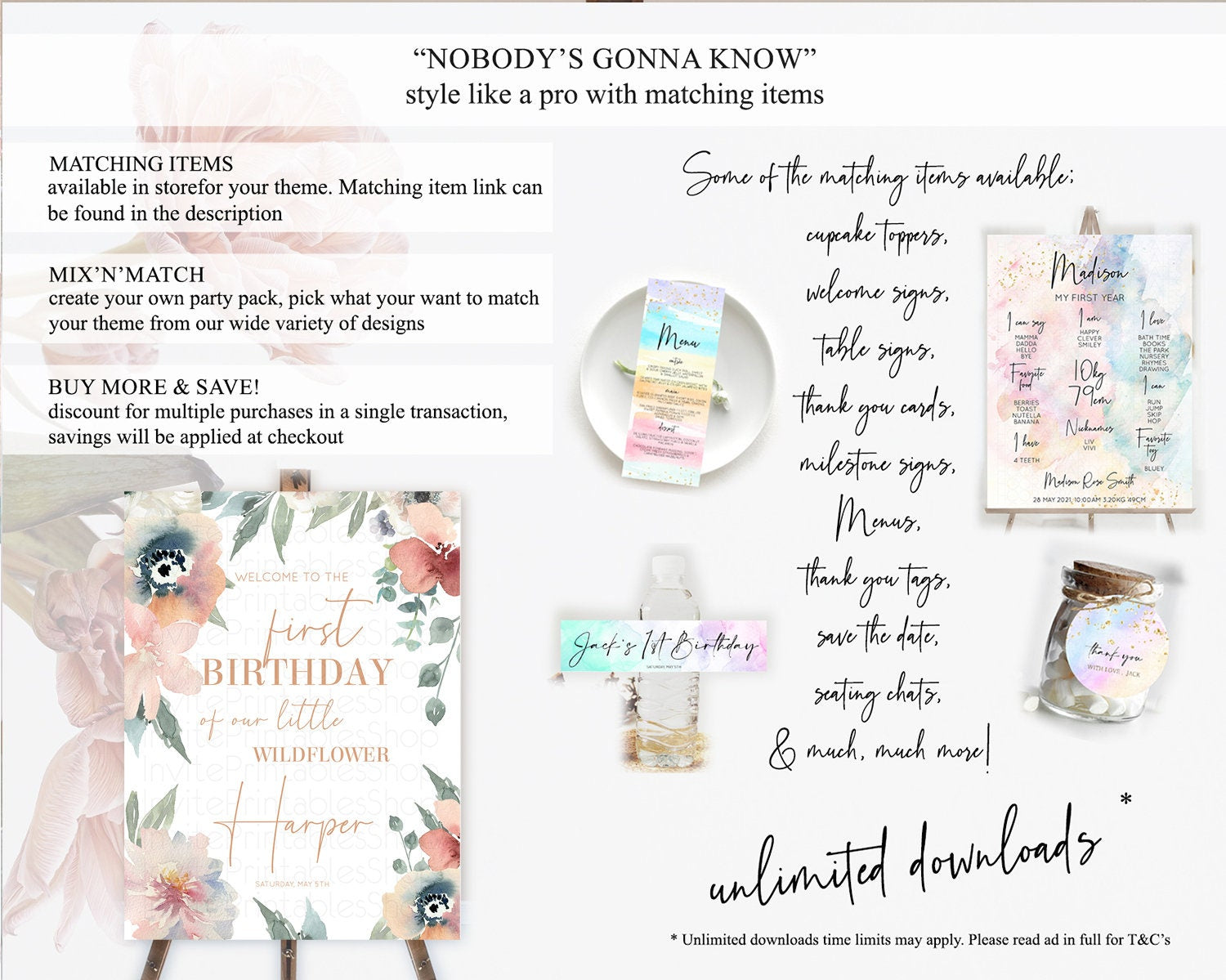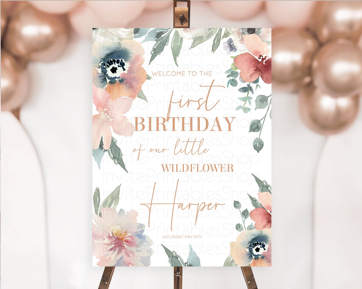 Secret Garden Welcome Sign Wildflower Welcome Board Pastel Flower Garden Welcome Poster Boho Wildflower First Birthday Welcome Sign D10787