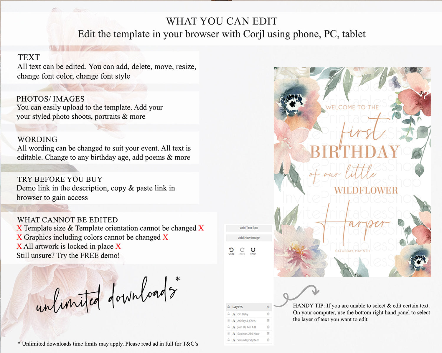 • After purchase, Corjl emails your editing link. Allow up to 15 minutes for delivery.