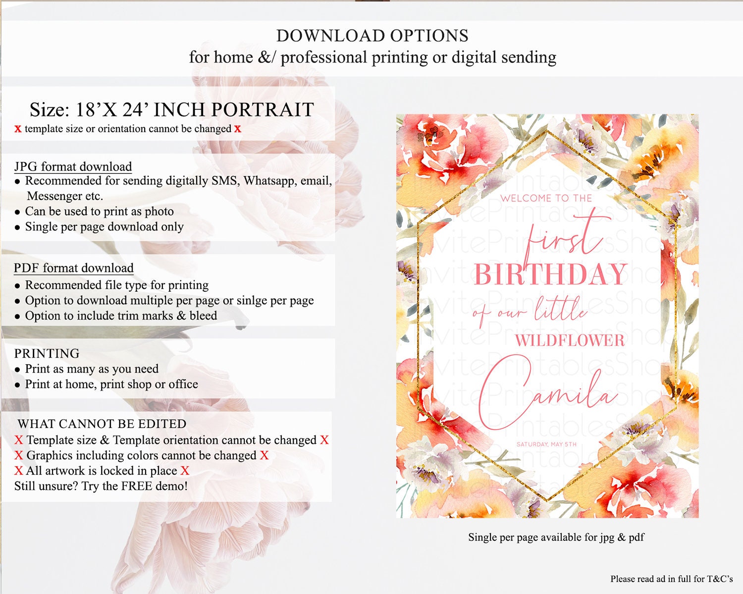 Secret Garden Welcome Sign Wildflower Welcome Board Pastel Flower Garden Welcome Poster Boho Wildflower First Birthday Welcome Sign D10791