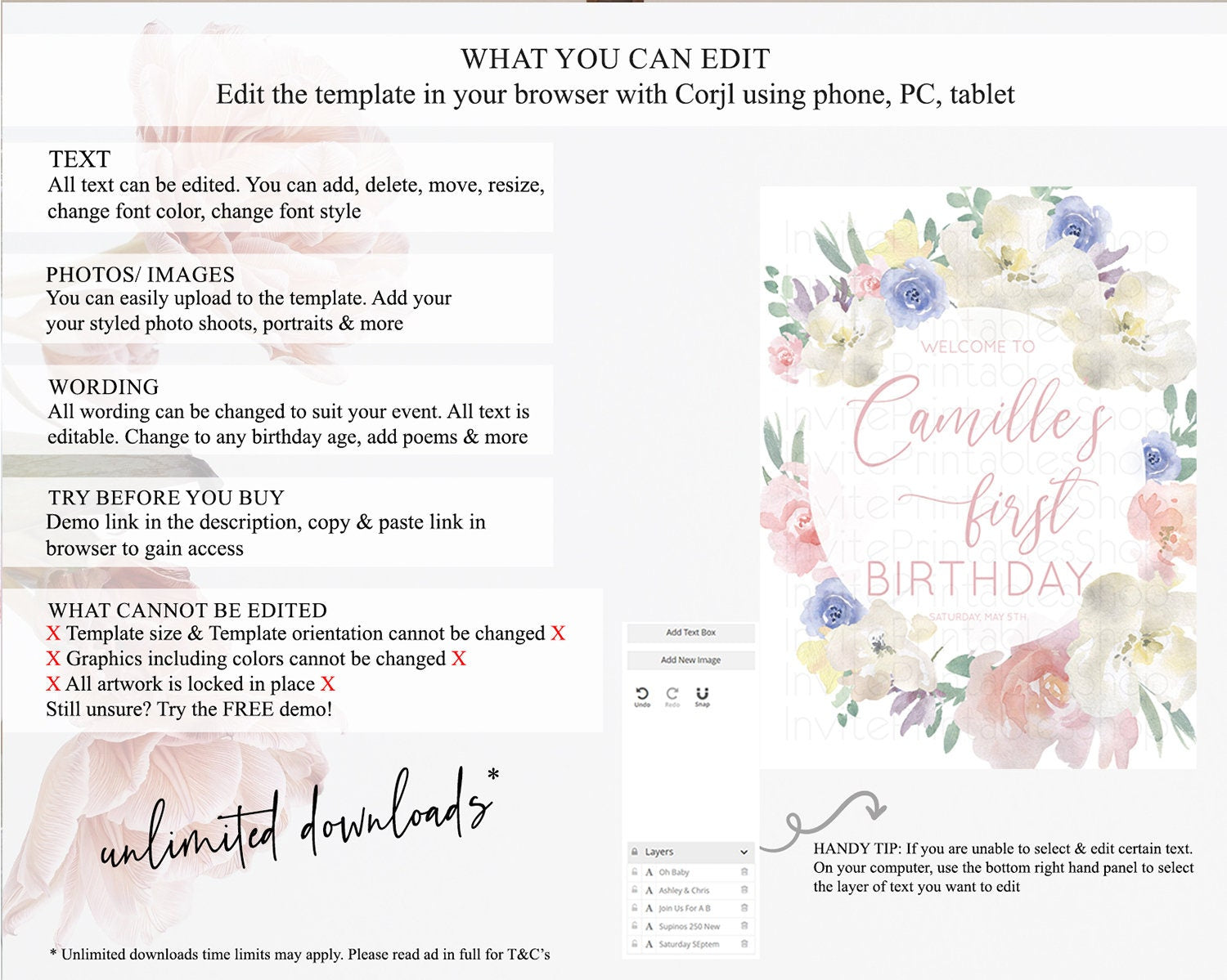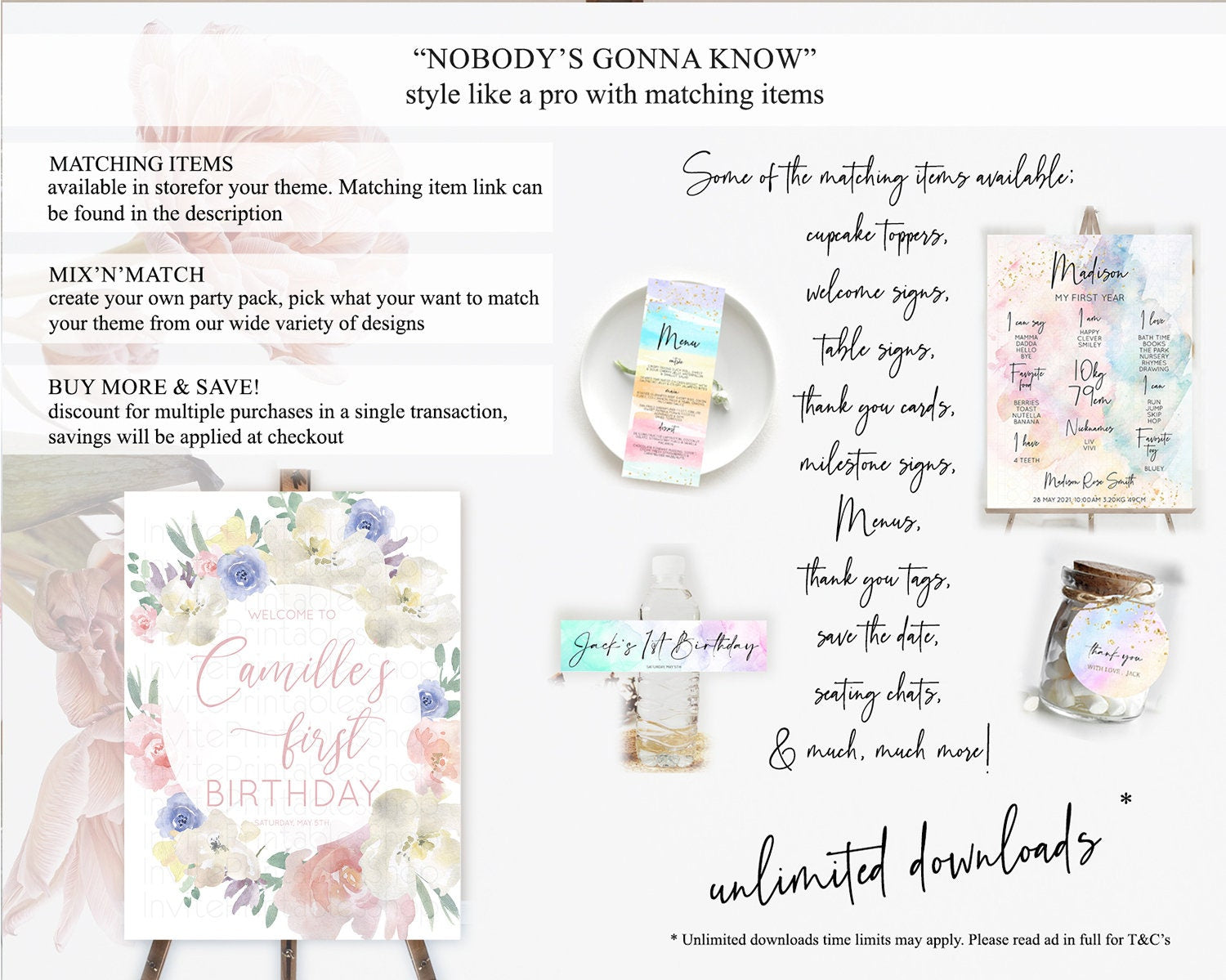 Secret Garden Welcome Sign Wildflower Welcome Board Pastel Flower Garden Welcome Poster Boho Wildflower First Birthday Welcome Sign D10841