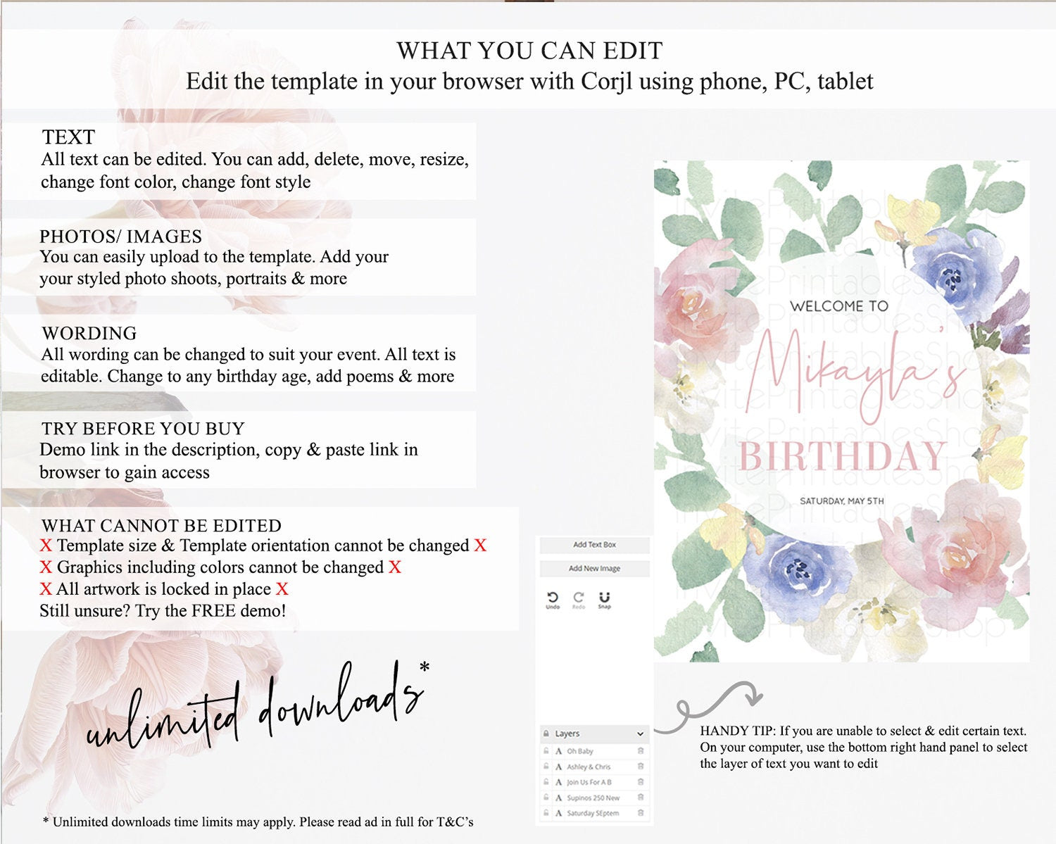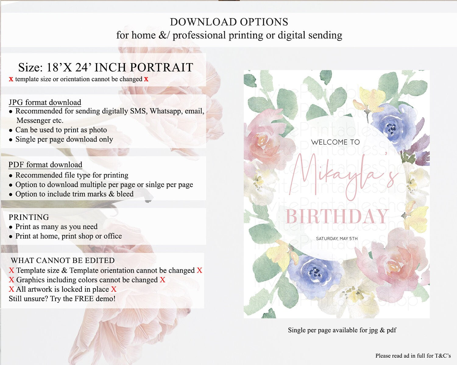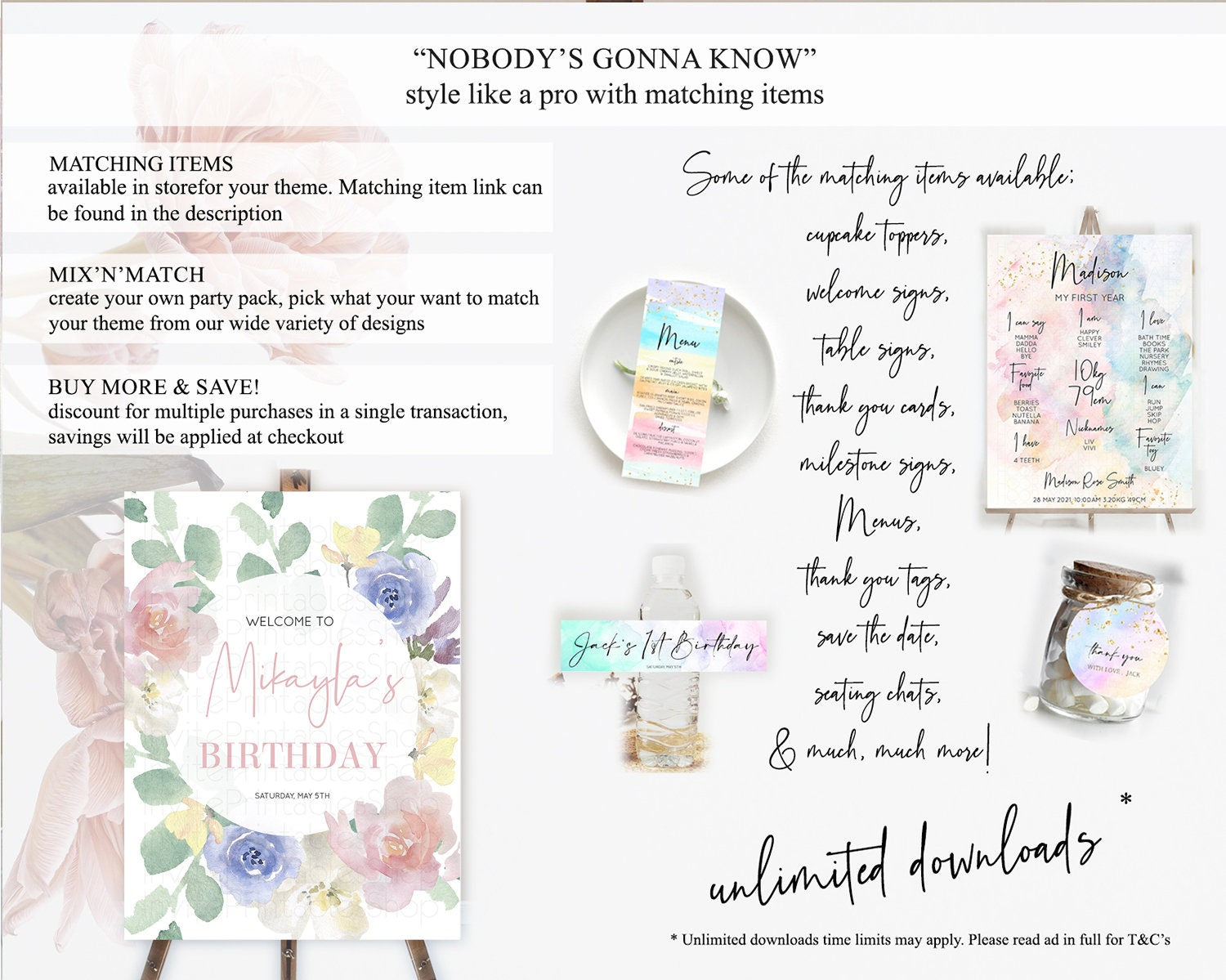 Secret Garden Welcome Sign Wildflower Welcome Board Pastel Flower Garden Welcome Poster Boho Wildflower First Birthday Welcome Sign D10860