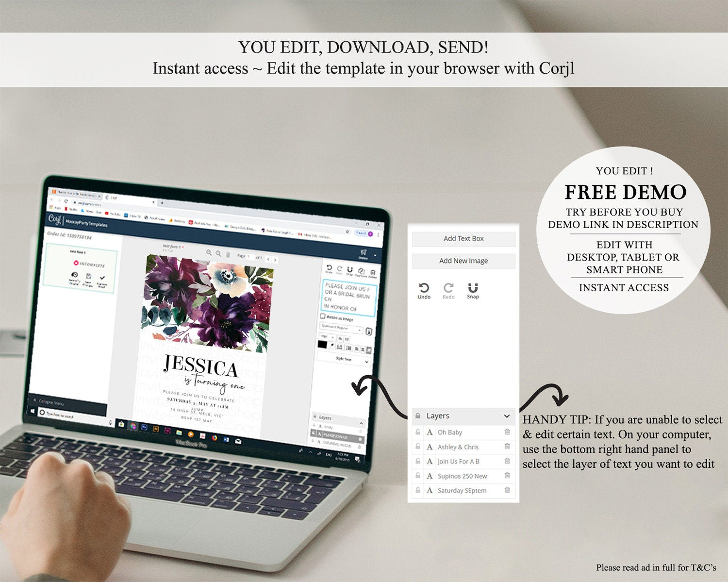 • After purchase, Corjl emails your editing link. Allow up to 15 minutes for delivery.