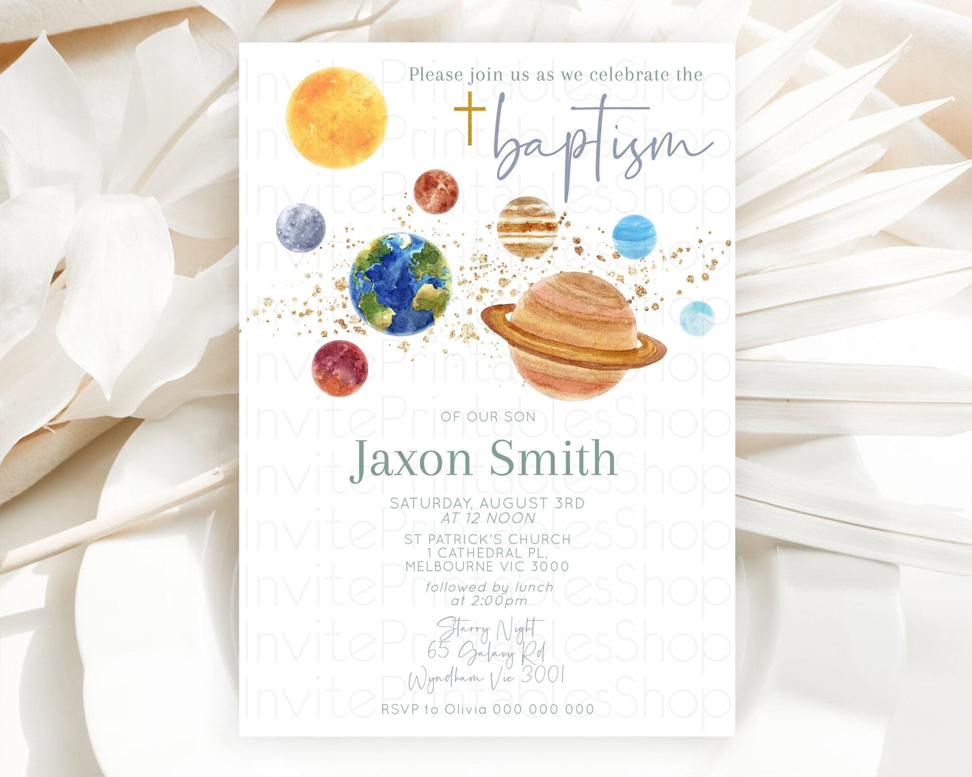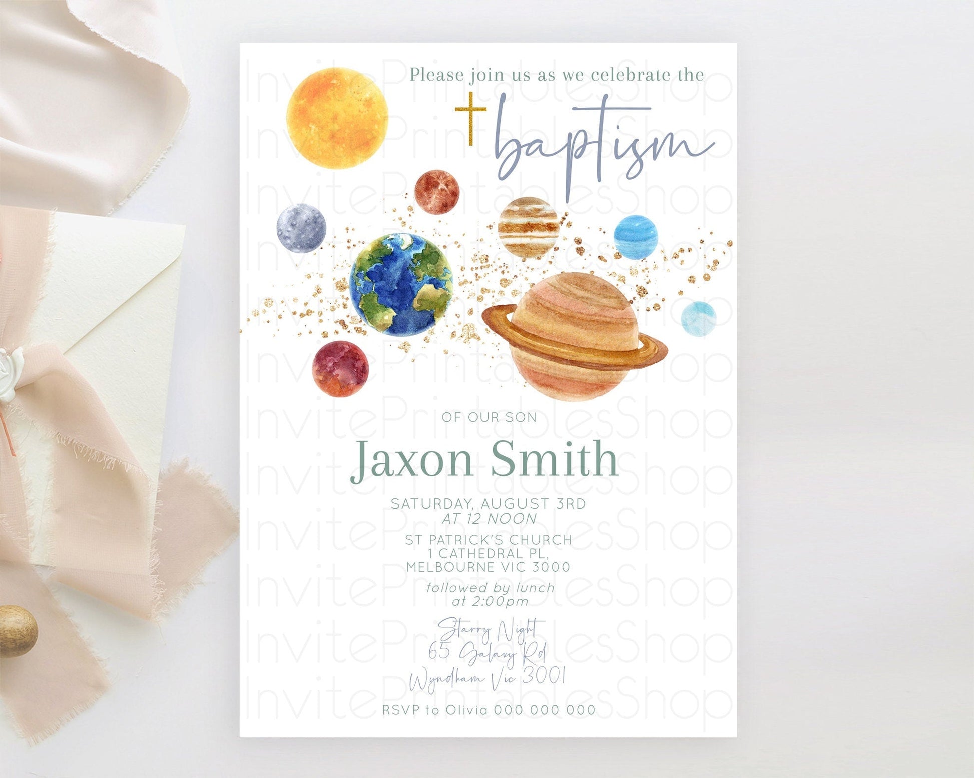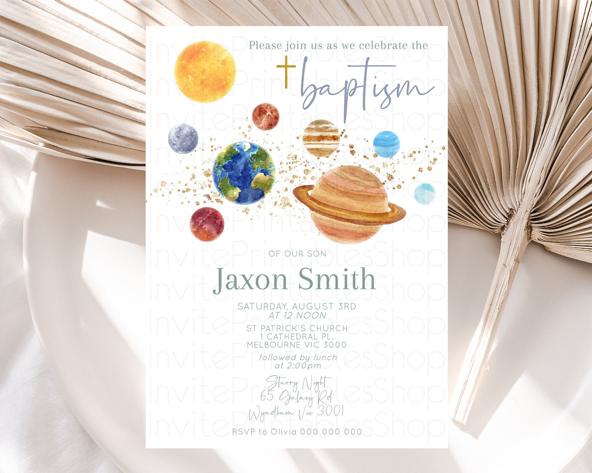 Space Baptism Invitation Space Baptism 1st Birthday Invitation Sun Planets Milkyway Solar System Christening Invitation D10598