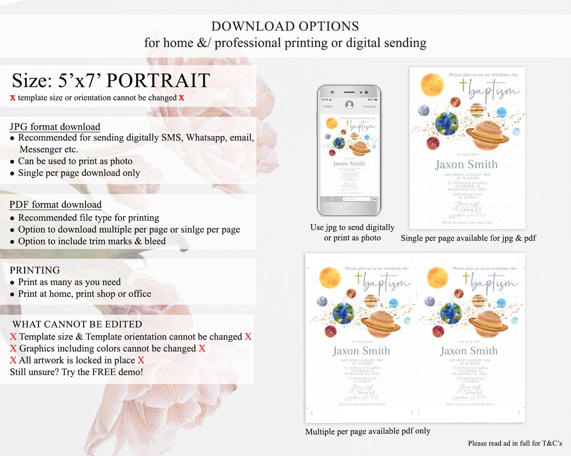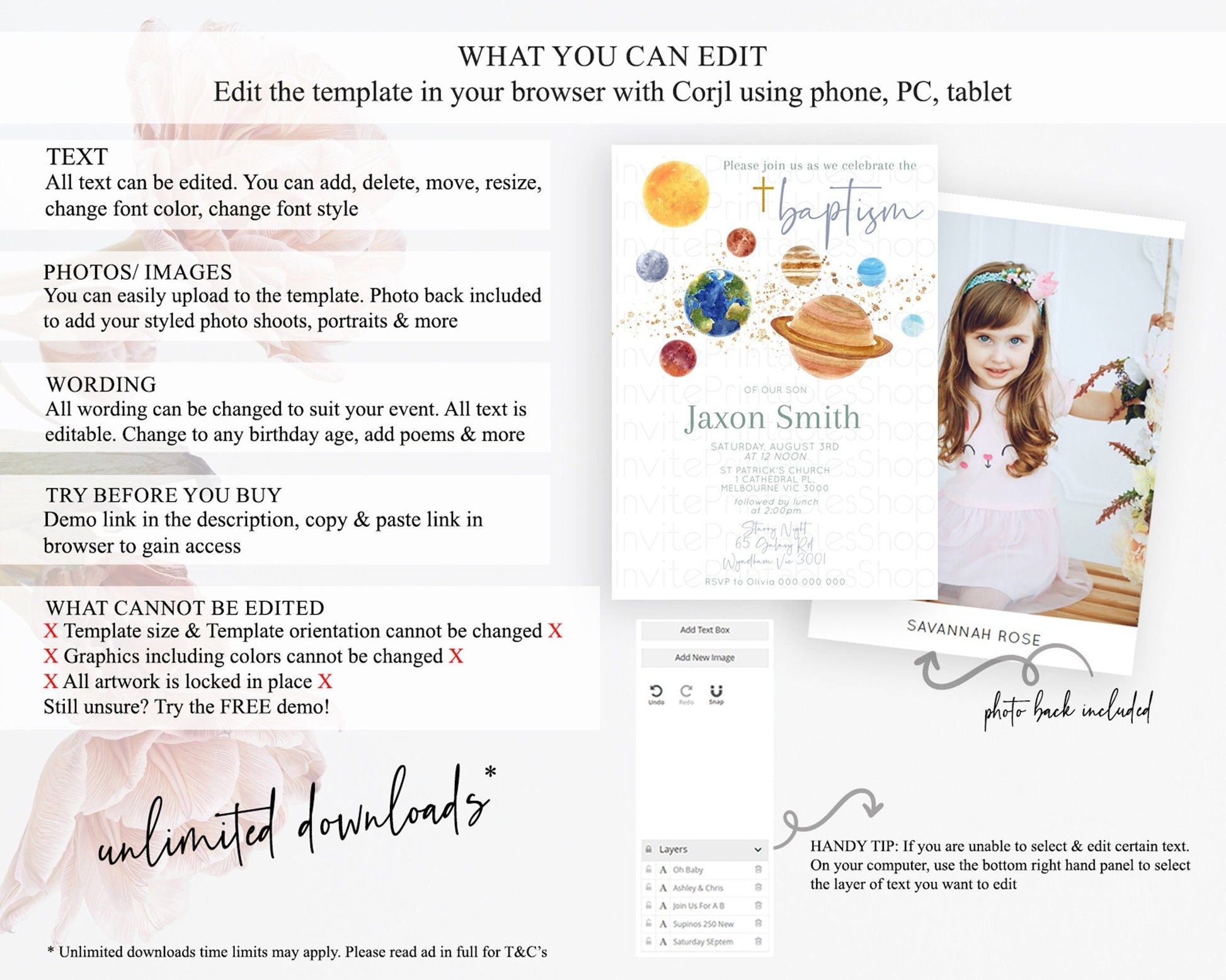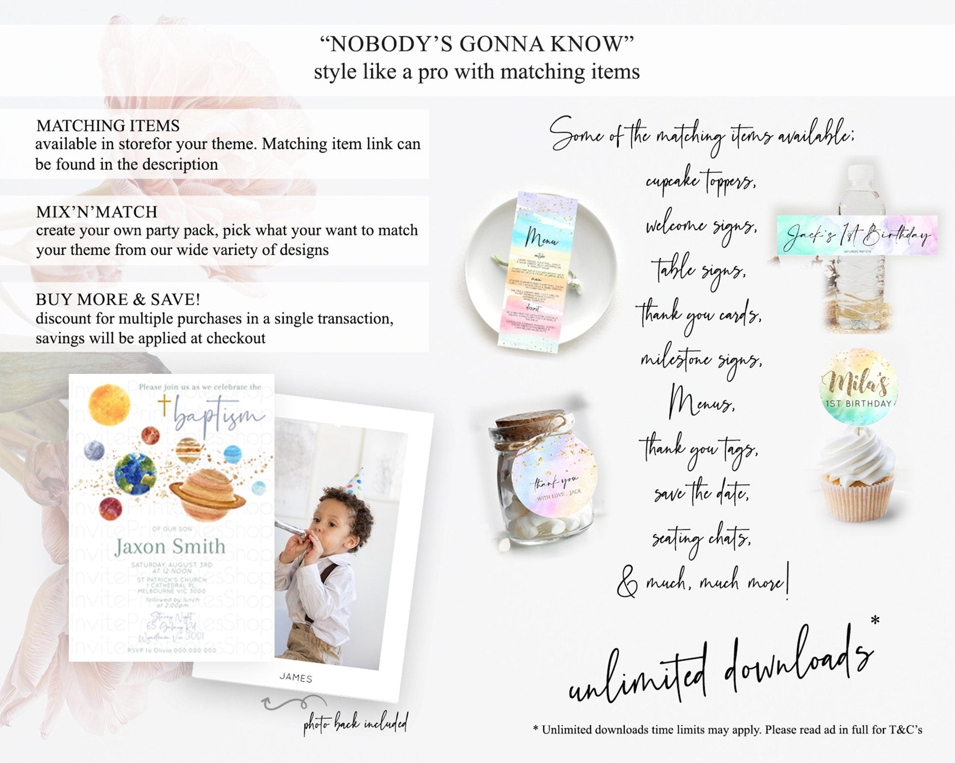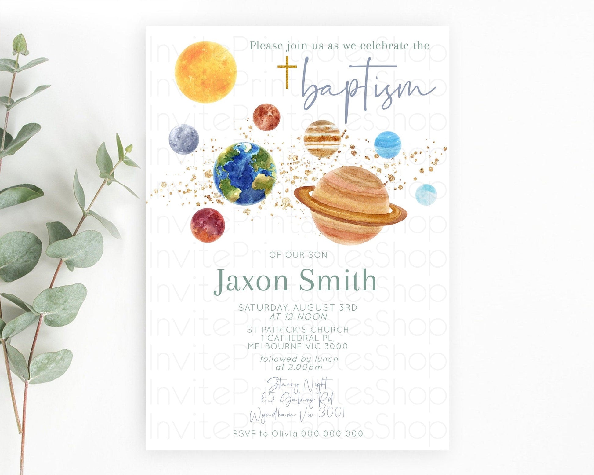 Space Baptism Invitation Space Baptism 1st Birthday Invitation Sun Planets Milkyway Solar System Christening Invitation D10598