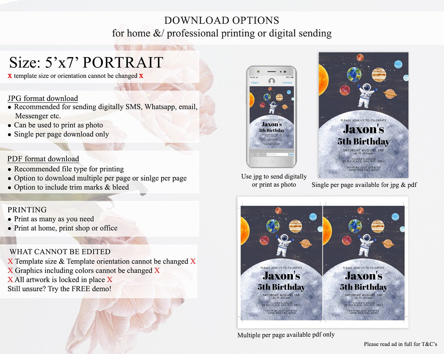 • Template size & orientation cannot be changed. Please use the demo link to confirm this product suits your needs.