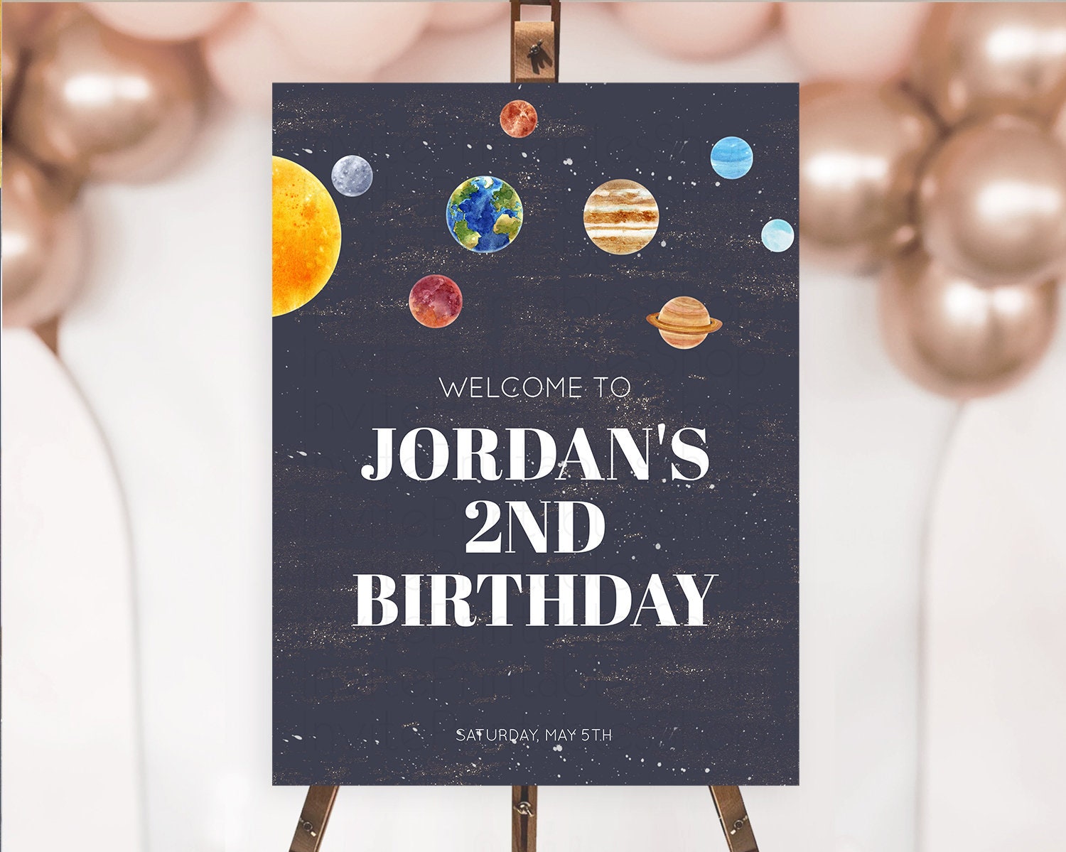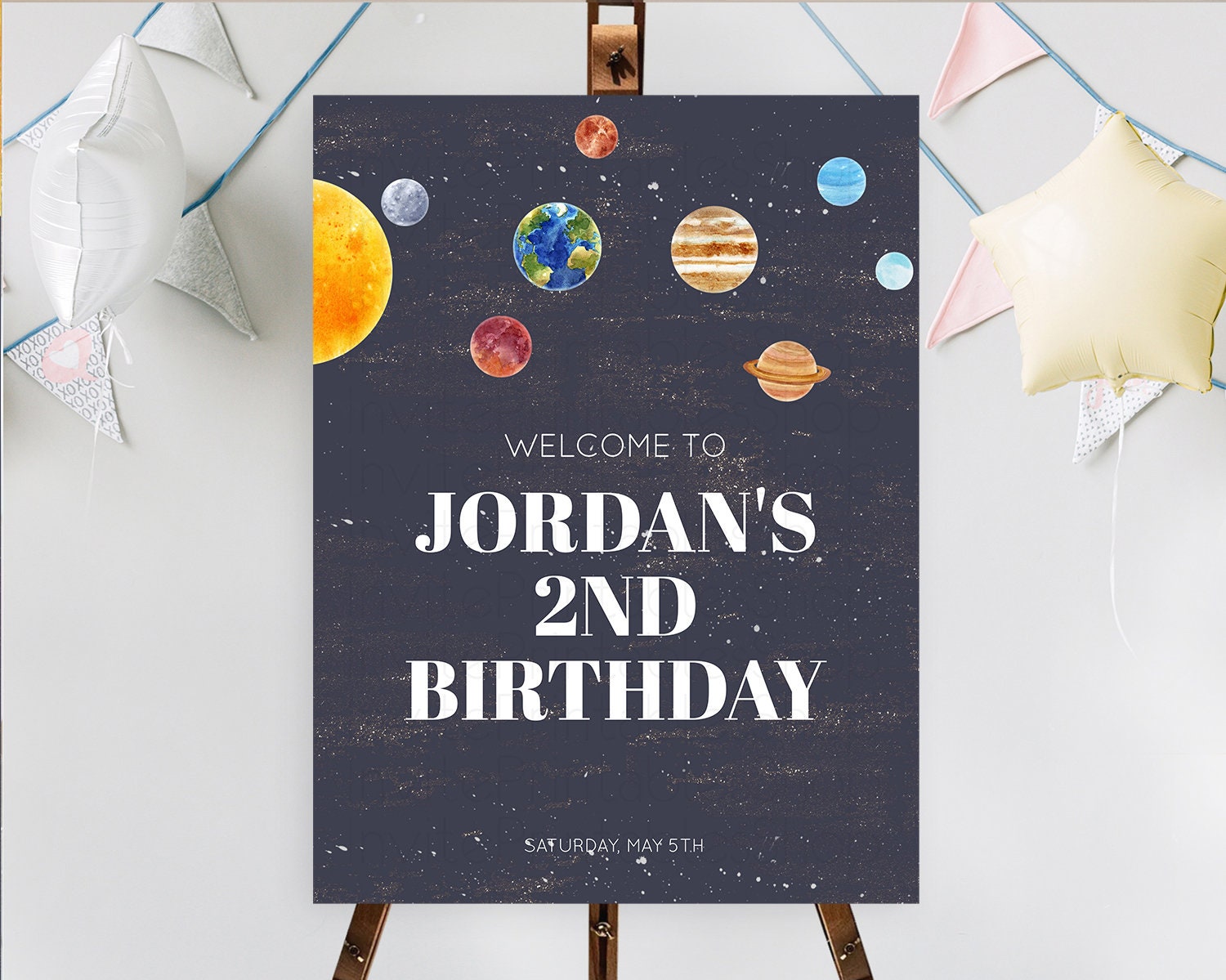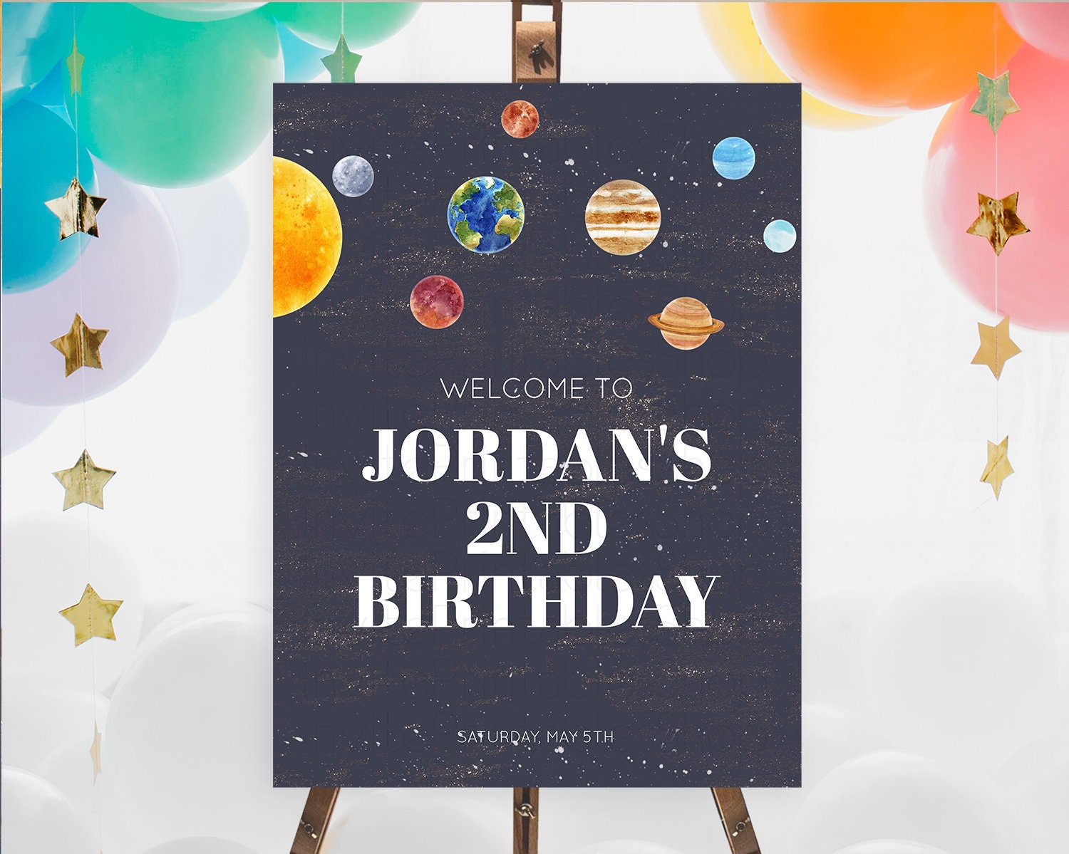Space Birthday Welcome Sign Space Welcome Board First Trip Around the Sun Welcome Poster Planets Solar System ONE year Birthday Sign D10144