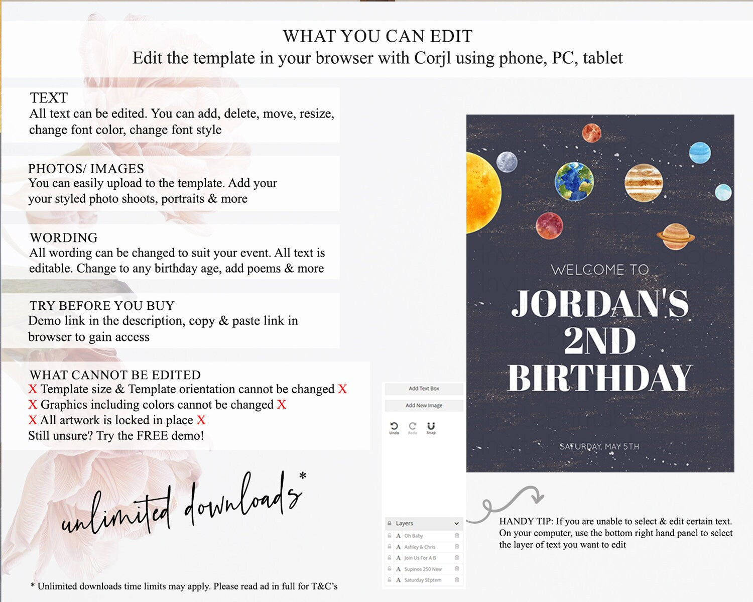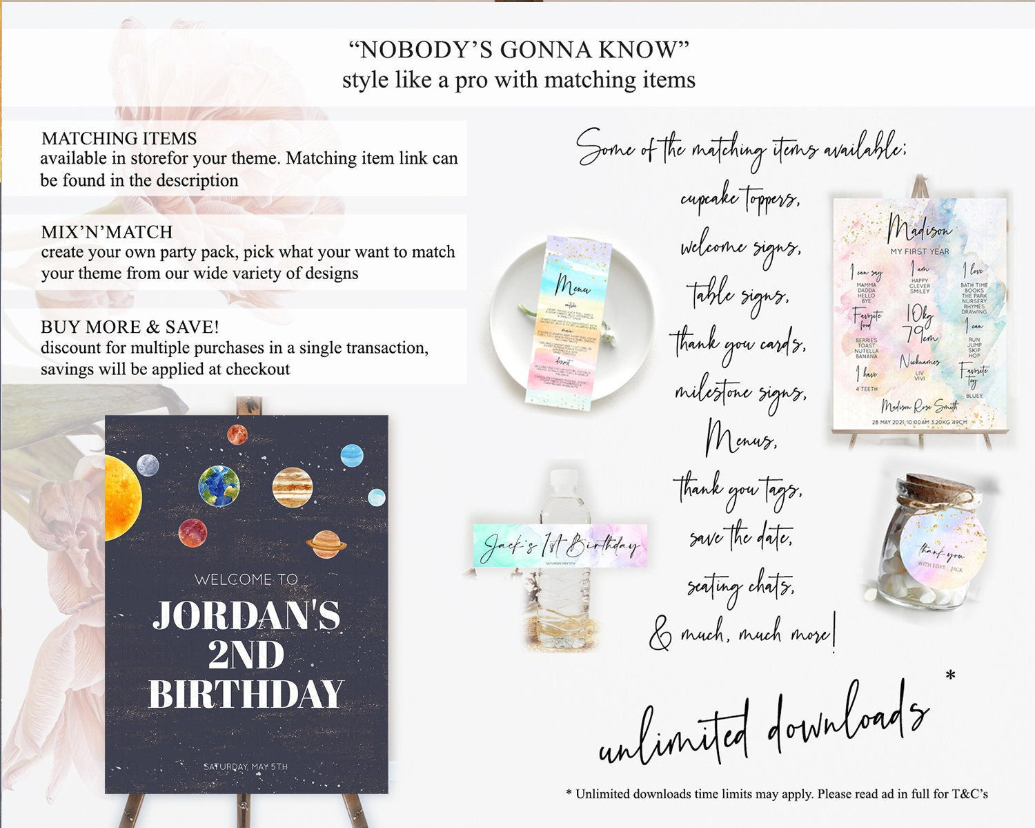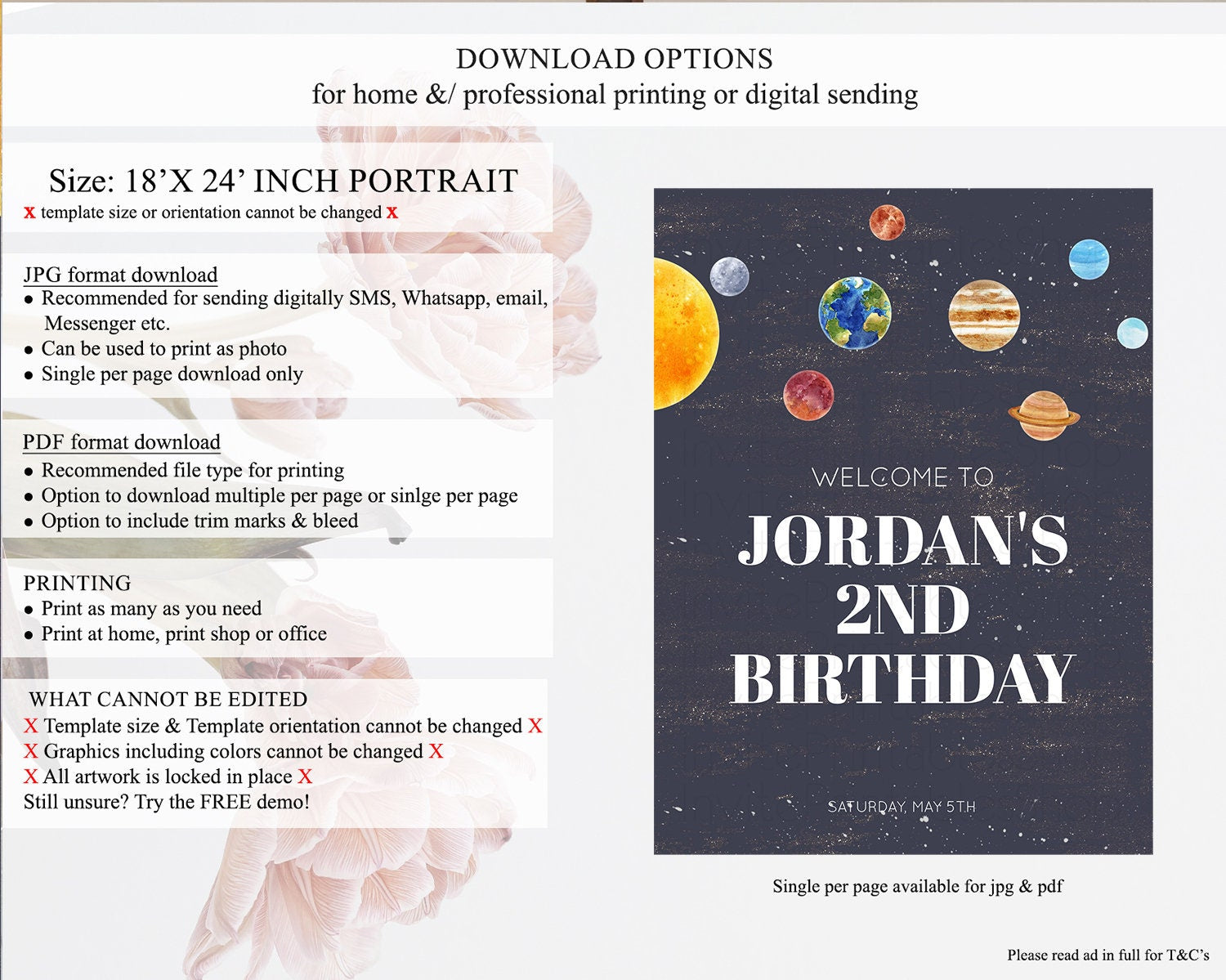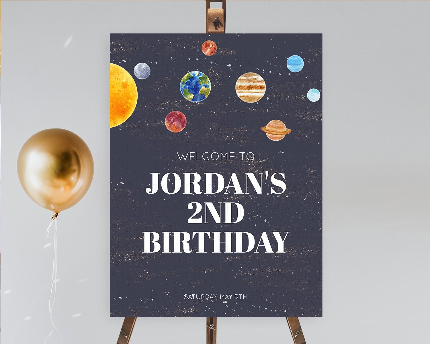 Space Birthday Welcome Sign Space Welcome Board First Trip Around the Sun Welcome Poster Planets Solar System ONE year Birthday Sign D10144