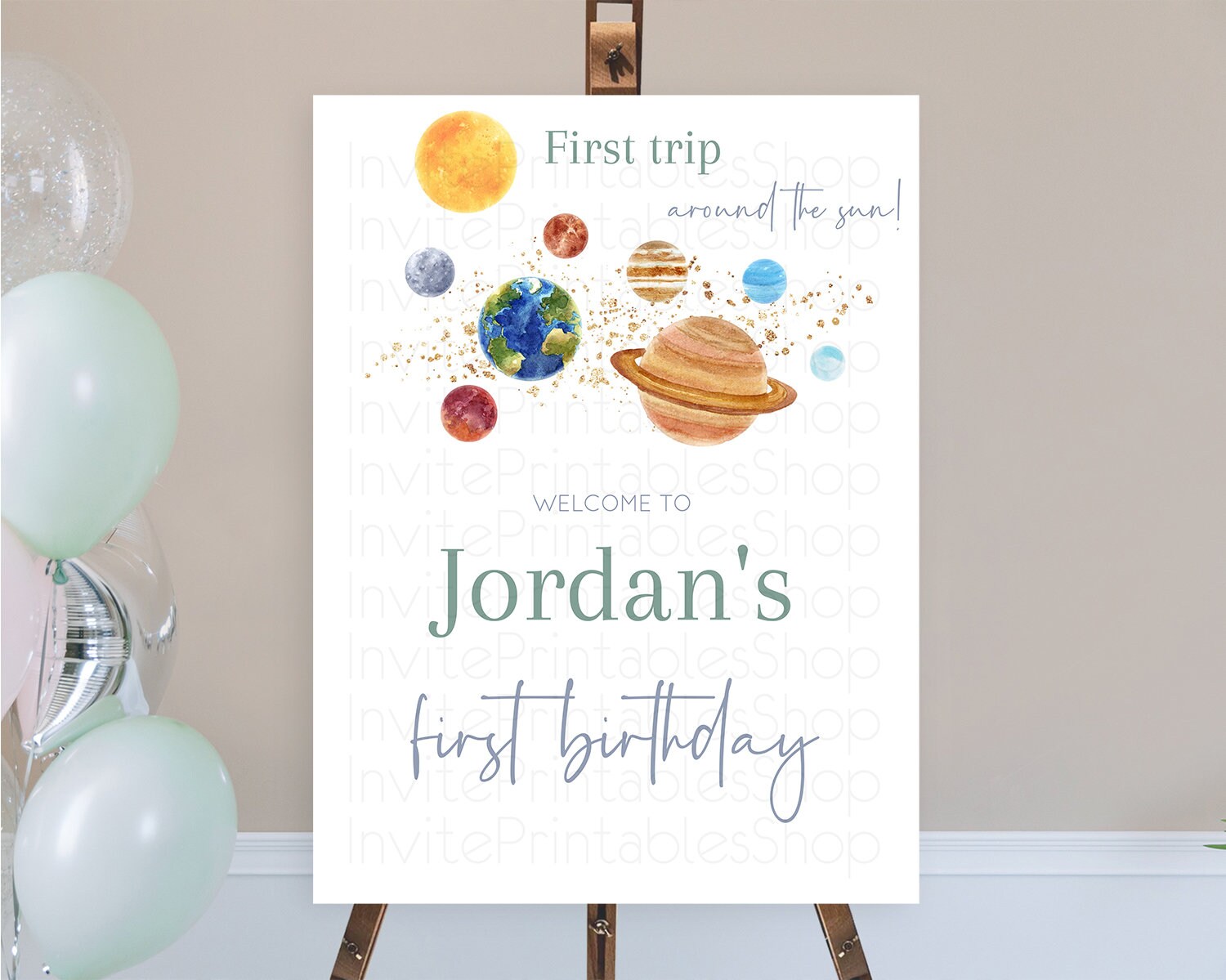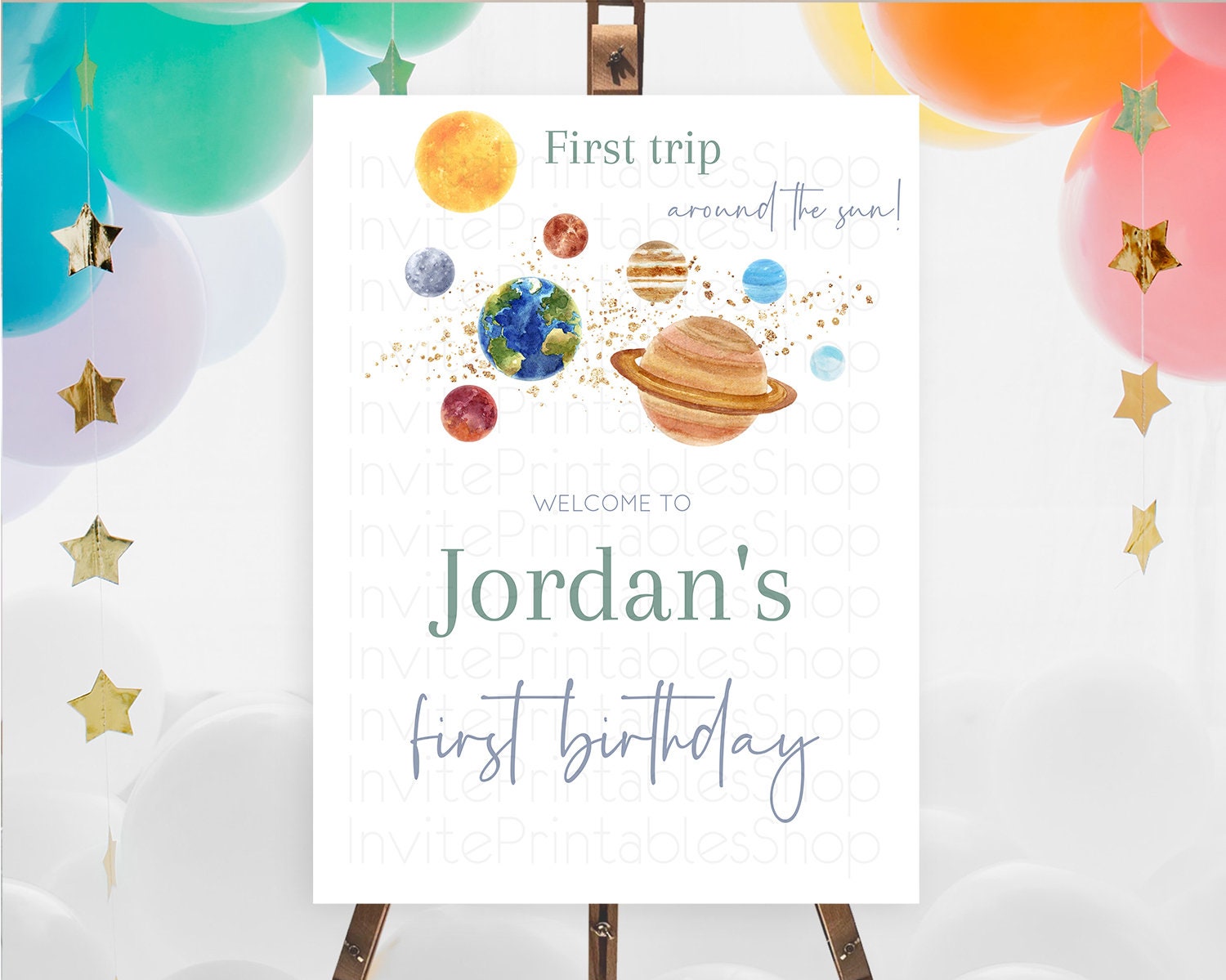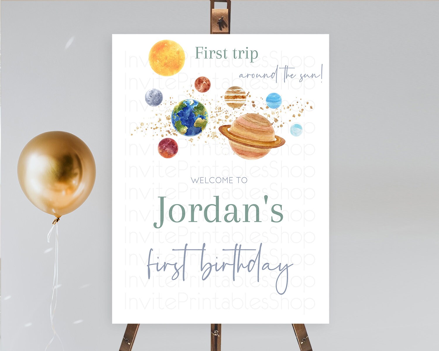 Space Birthday Welcome Sign Space Welcome Board First Trip Around the Sun Welcome Poster Planets Solar System ONE year Birthday Sign D10598