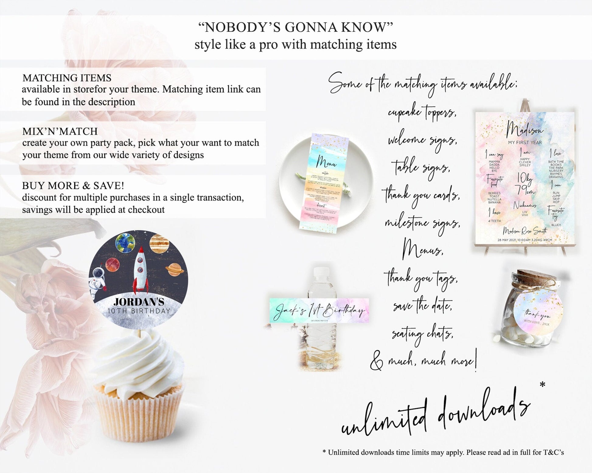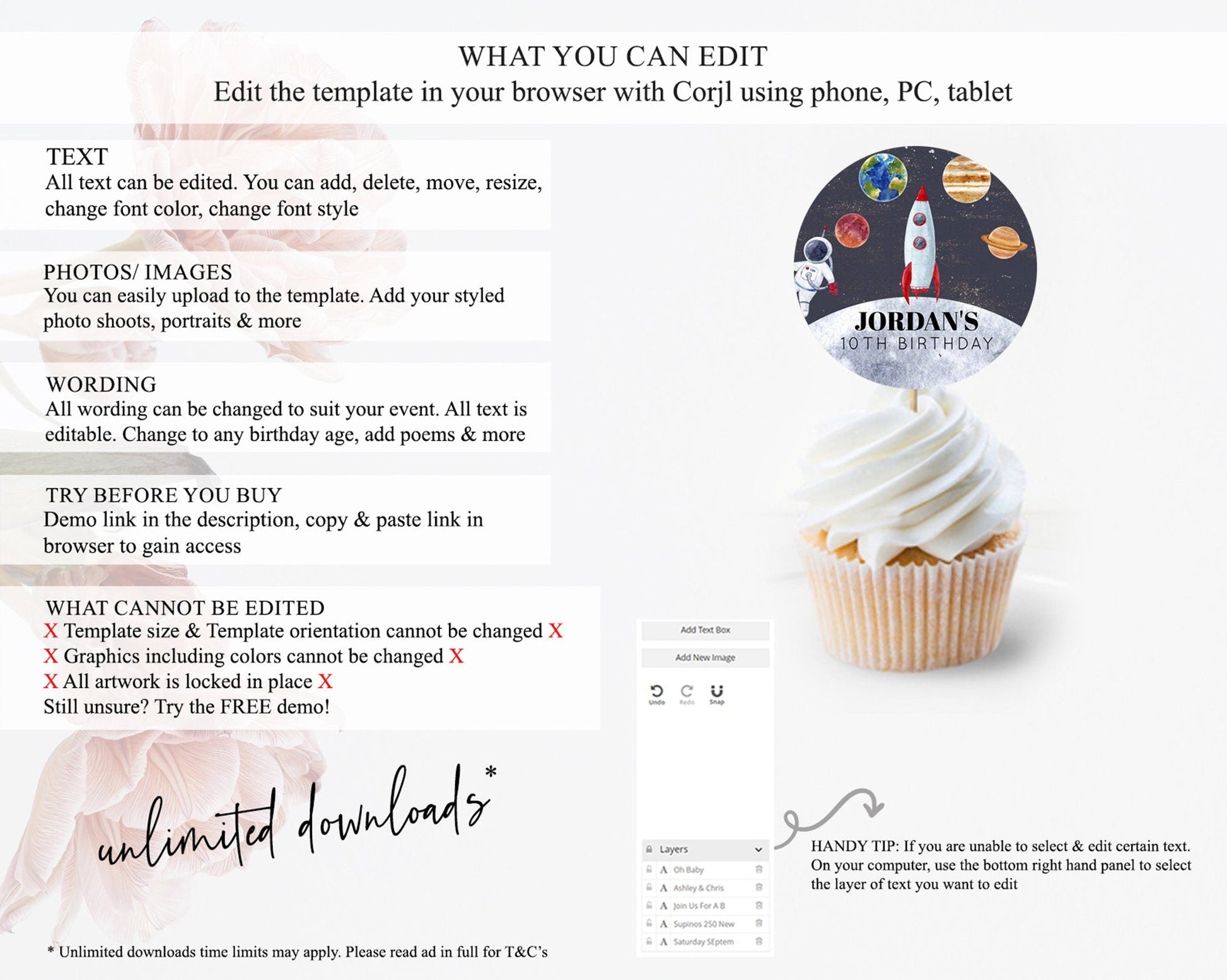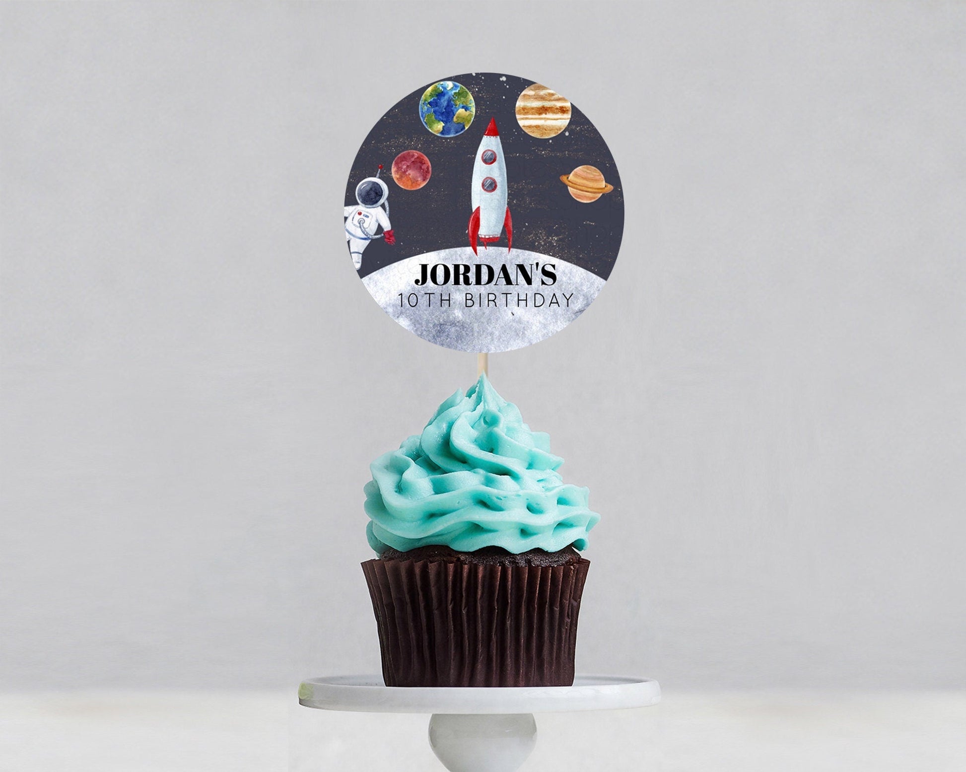 Space Cupcake Toppers Space Decor First Trip Around the Sun Decor Decor Sky Stars Planets Milkyway Solar System Cupcake Topper D10430