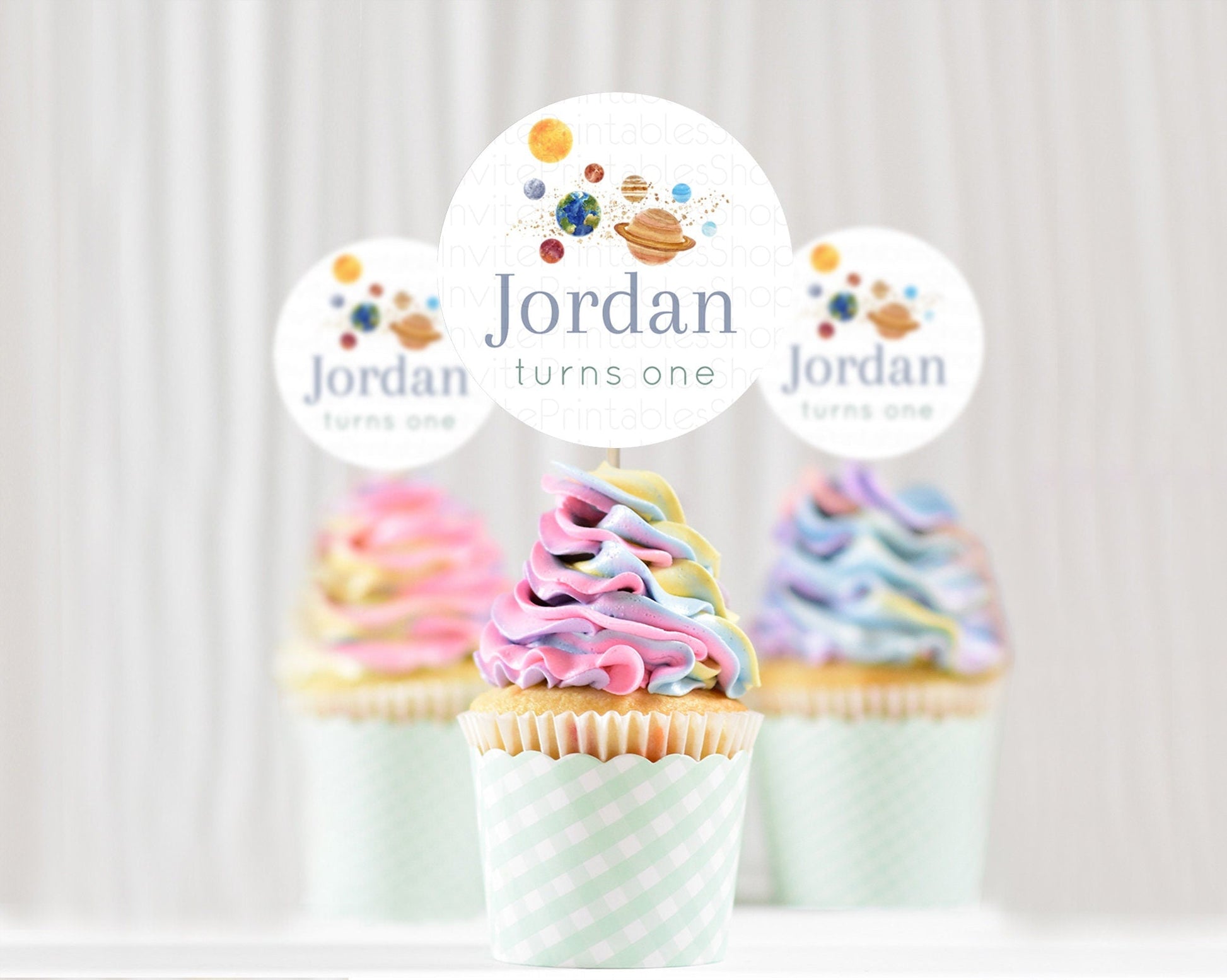 Space Cupcake Toppers Space Decor First Trip Around the Sun Decor Decor Sky Stars Planets Milkyway Solar System Cupcake Topper D10598