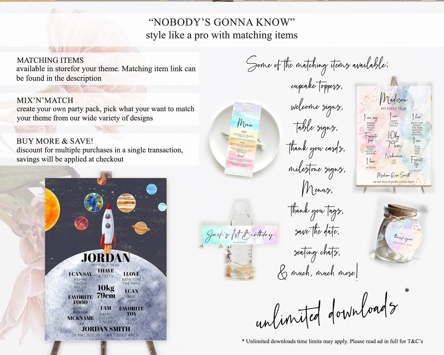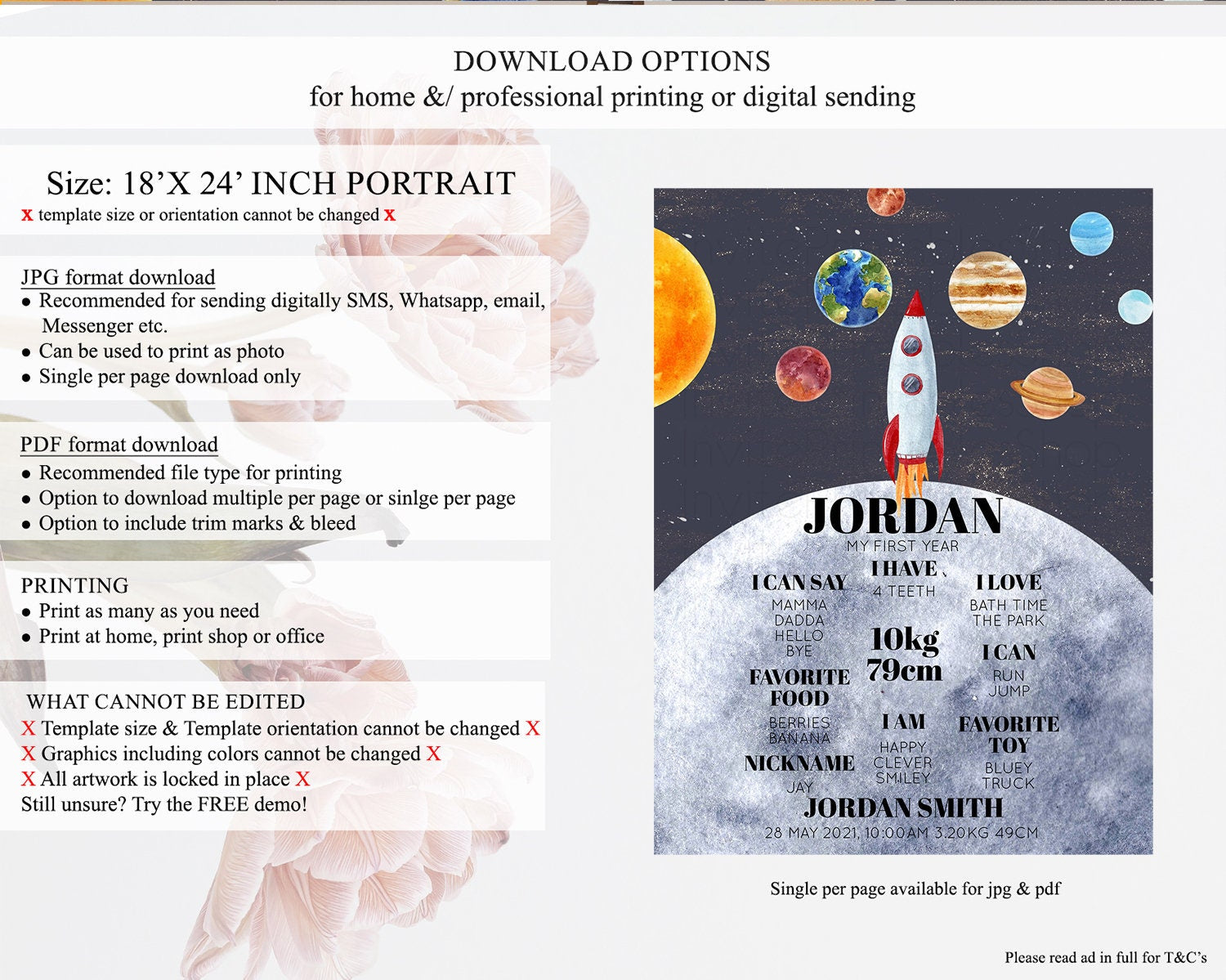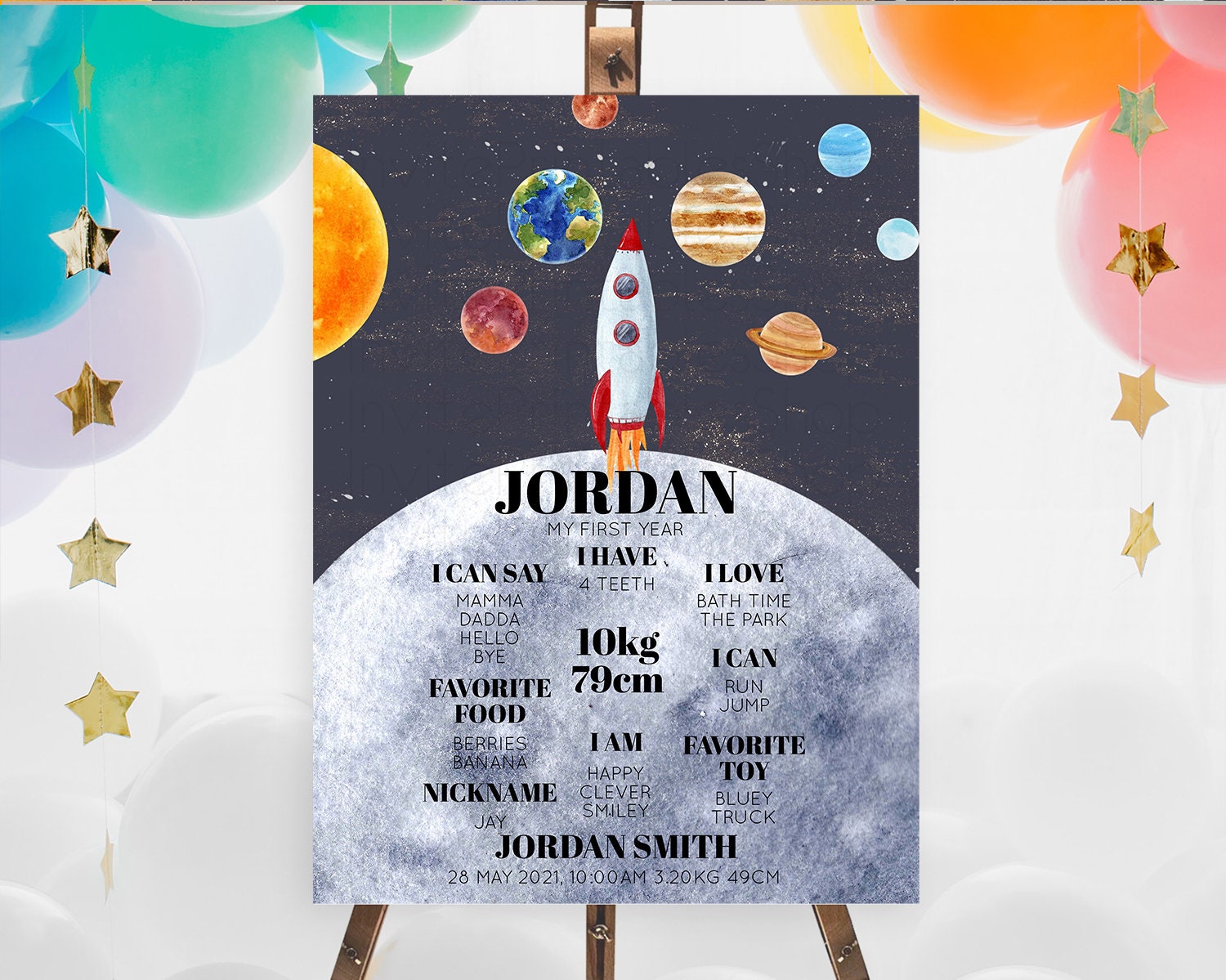 Space First Birthday Milestone Poster Space Milestone Board First Trip Around the Sun Planets Solar System ONE year Birthday Sign D10430