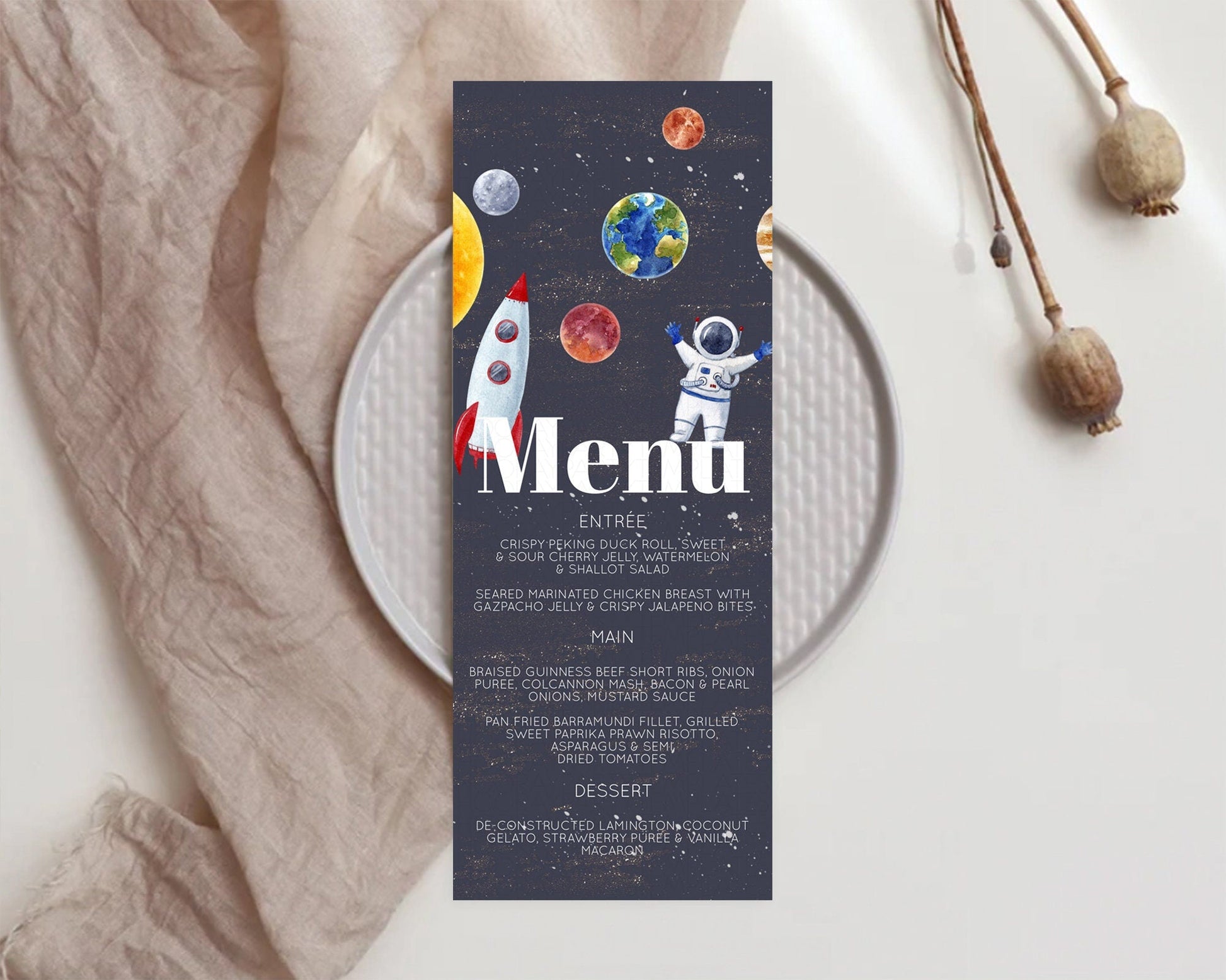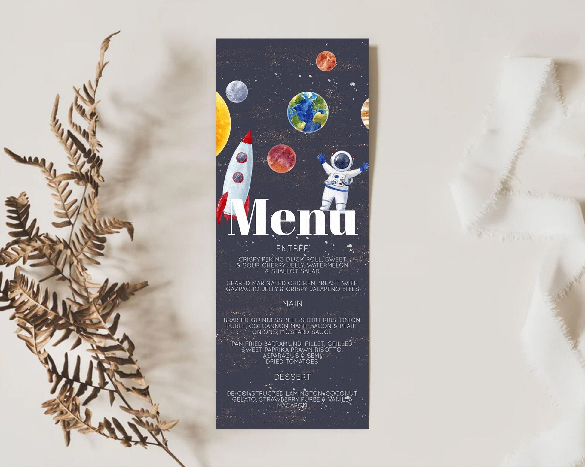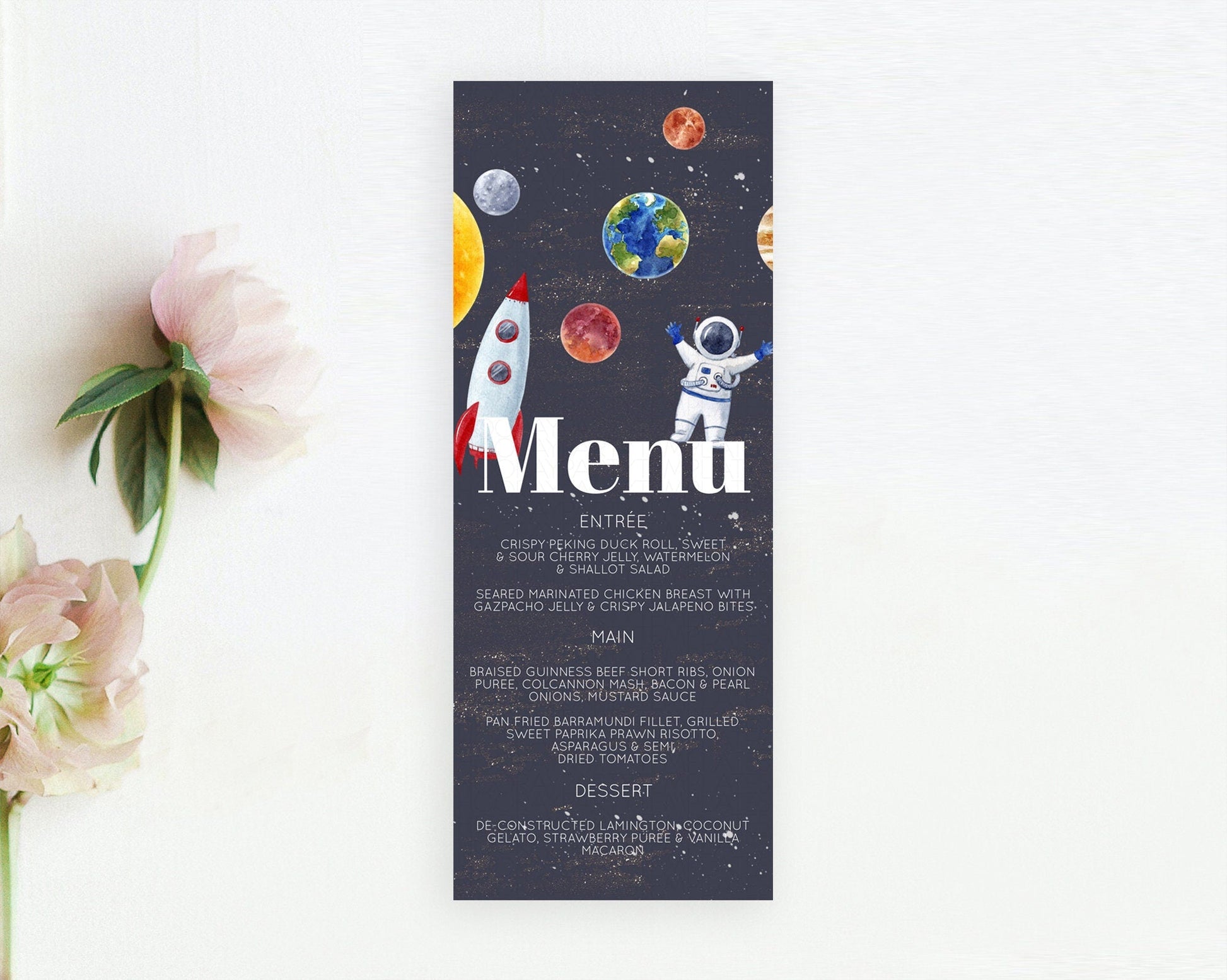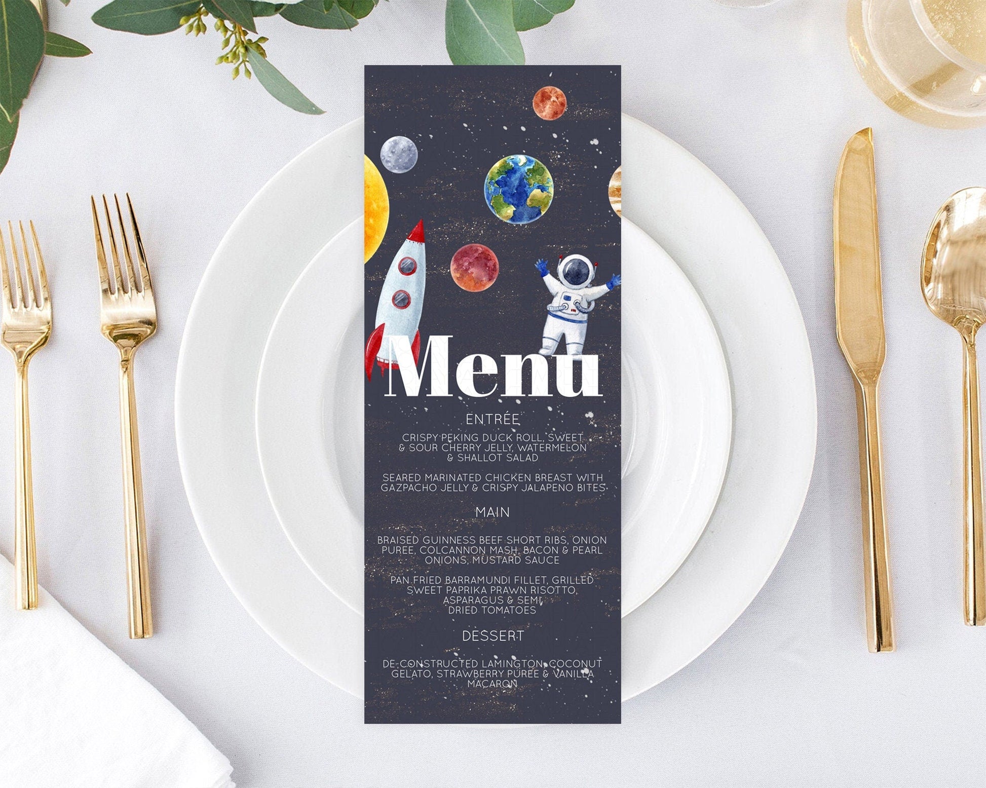 Space Menu Space Menu Template First Trip Around the Sun Table Decor Planets Solar System ONE year Food Menu Dinner Dessert Menu D10144