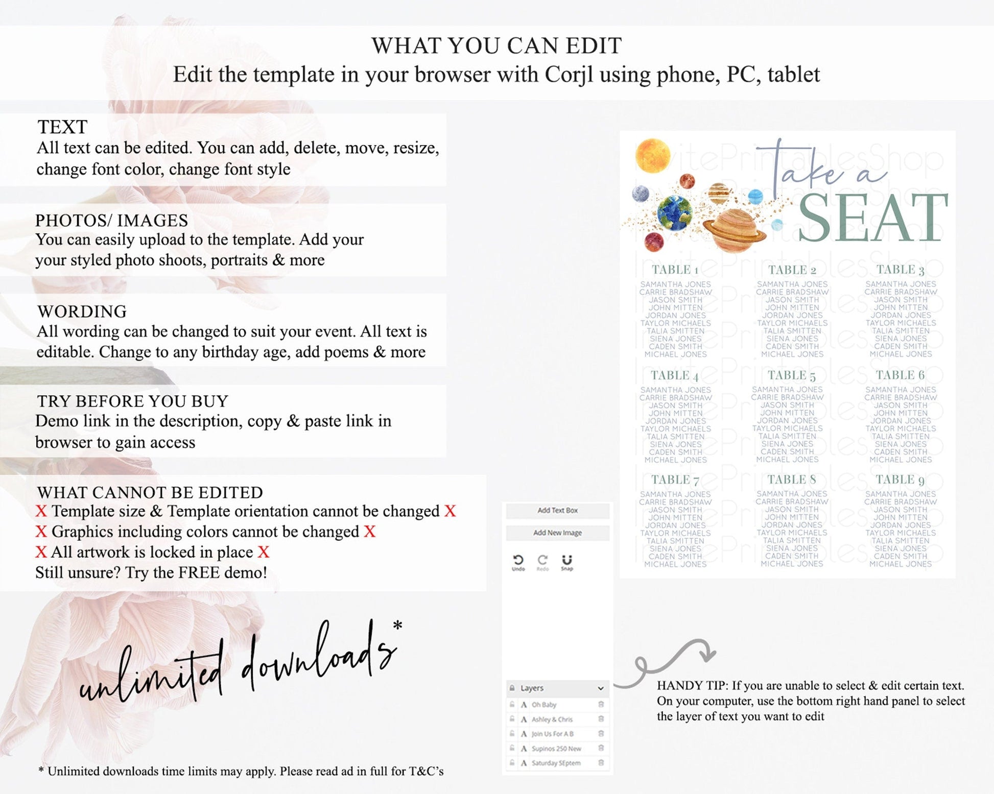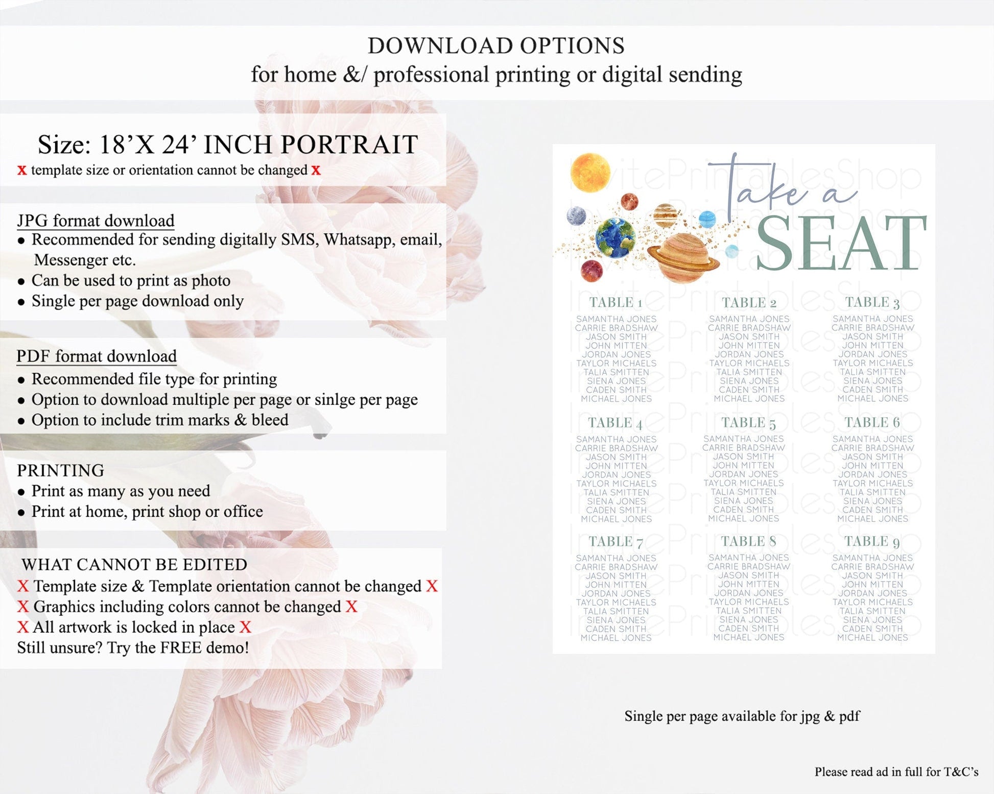 Space Seating Chart Space Seating Decor First Trip Around the Sun Decor Decor Sky Stars Planets Milkyway Solar System Take A Seat D10598