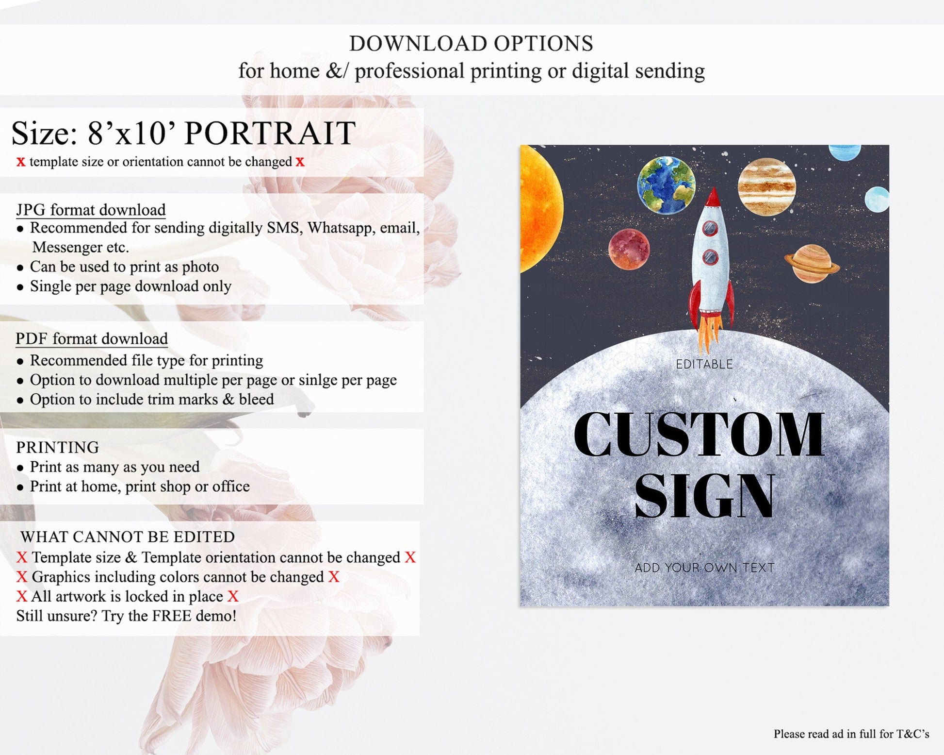 • Template size & orientation cannot be changed. Please use the demo link to confirm this product suits your needs.