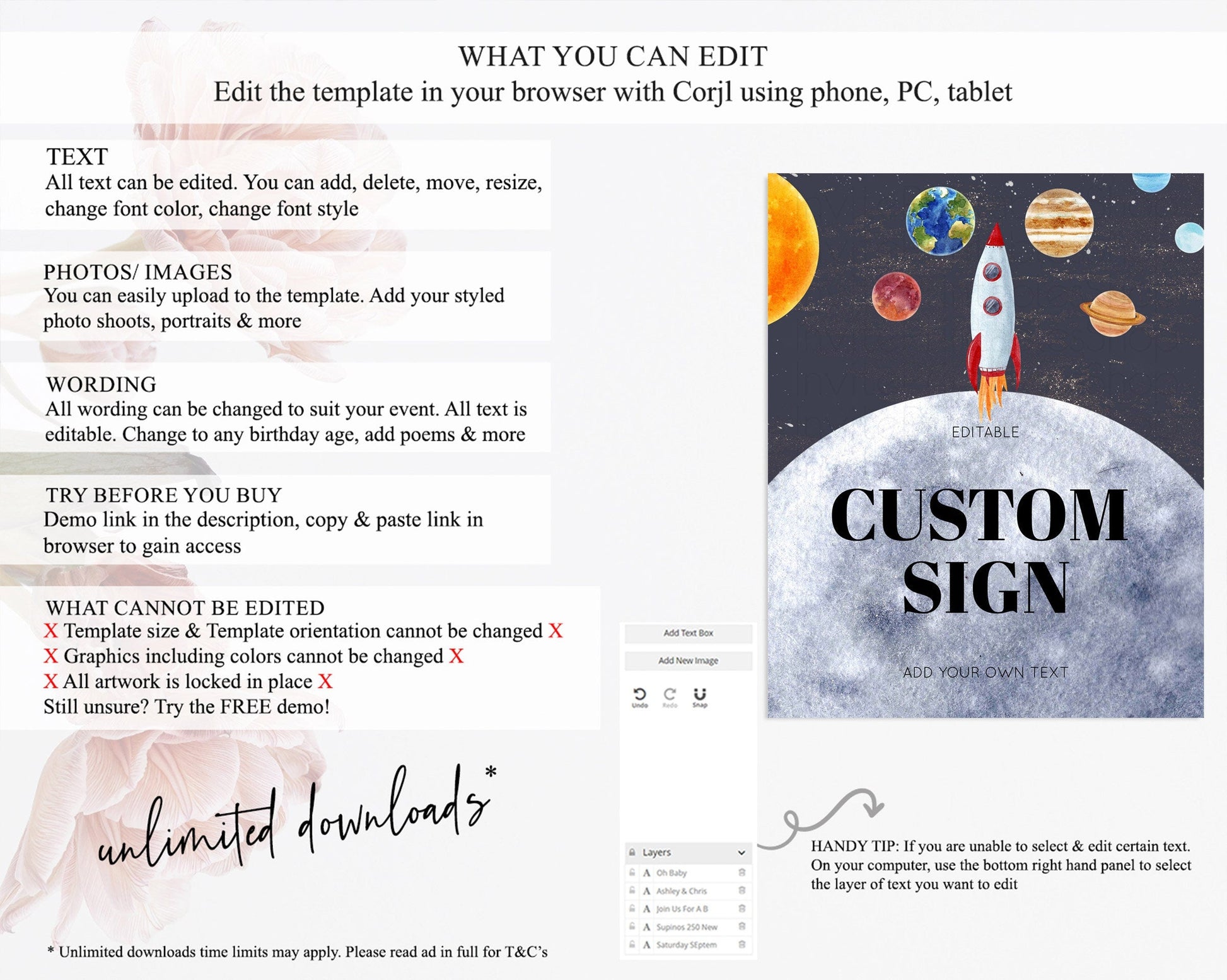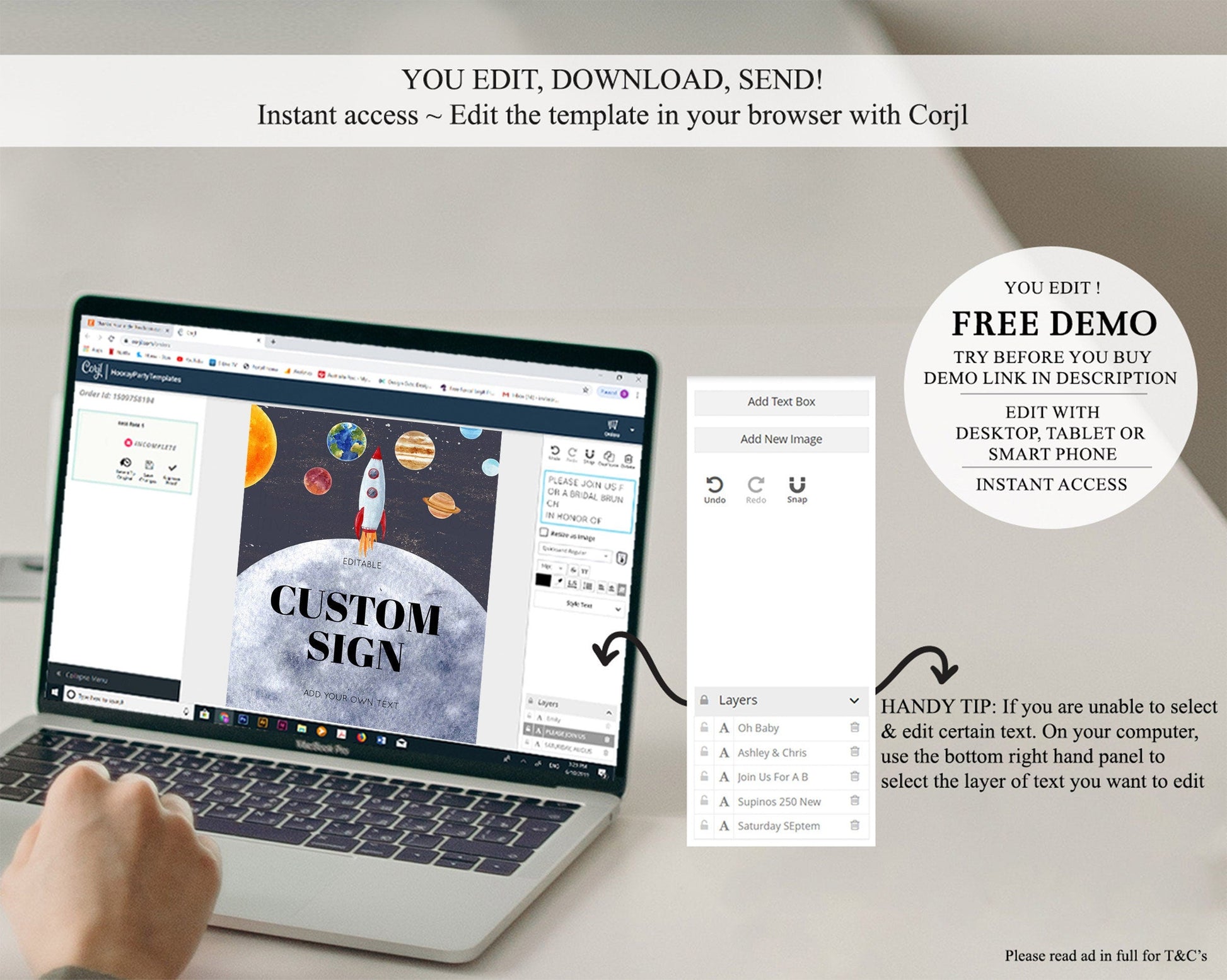 • After purchase, Corjl emails your editing link. Allow up to 15 minutes for delivery.