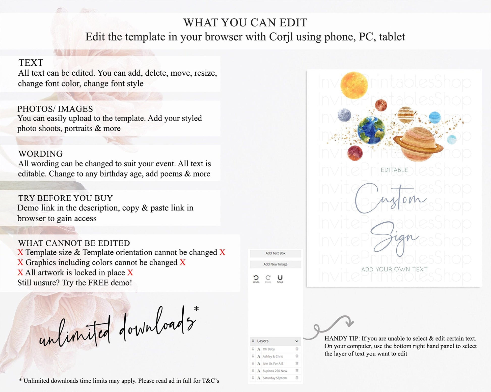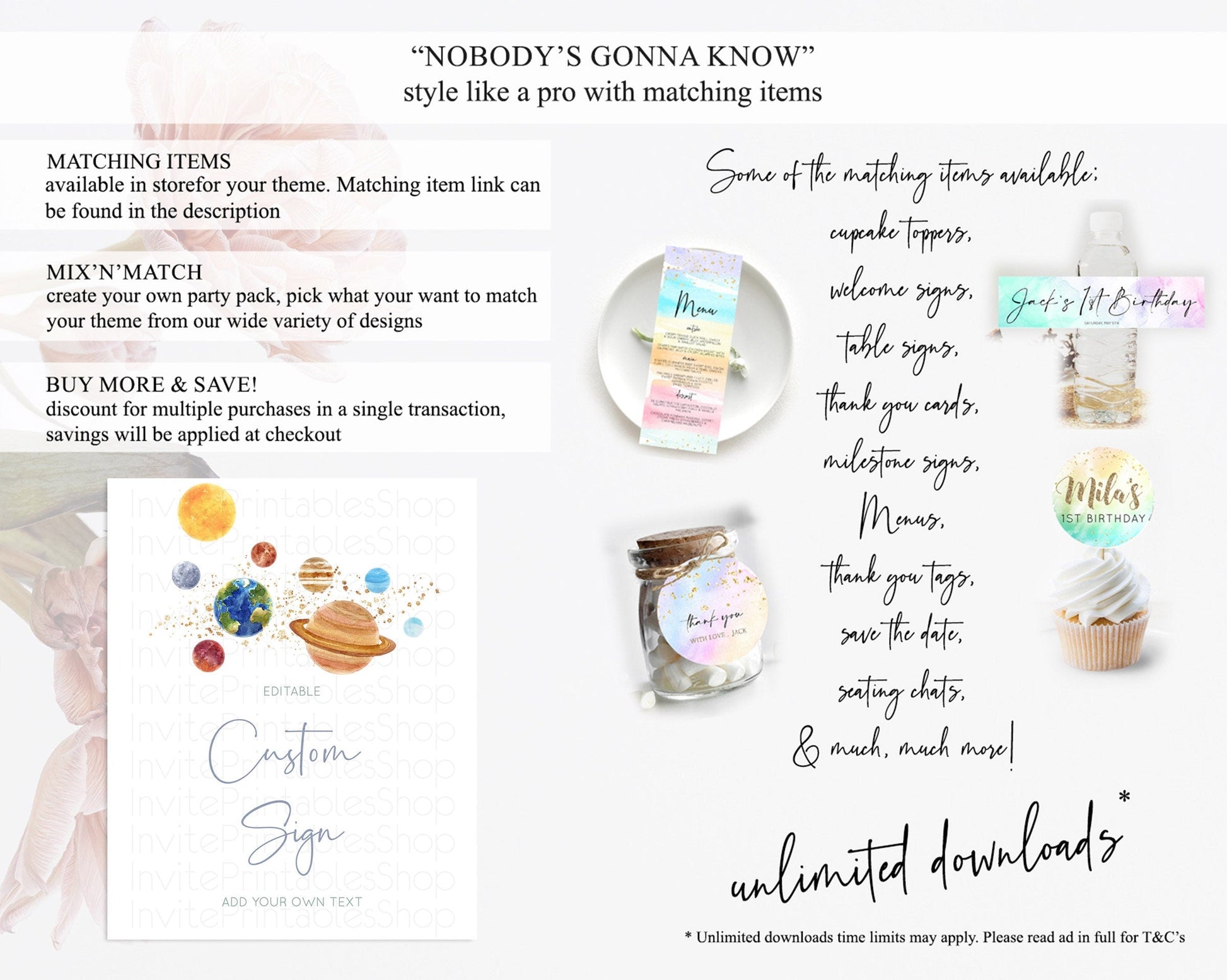 Space Table Sign Decor Galaxy Space Adventure Party First Trip Around the Sun Planets Solar System 1st Birthday Baptism Baby Shower D10598