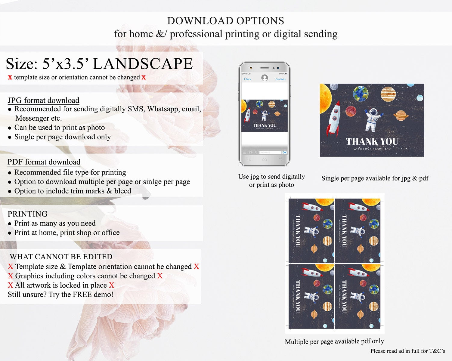 • Template size & orientation cannot be changed. Please use the demo link to confirm this product suits your needs.