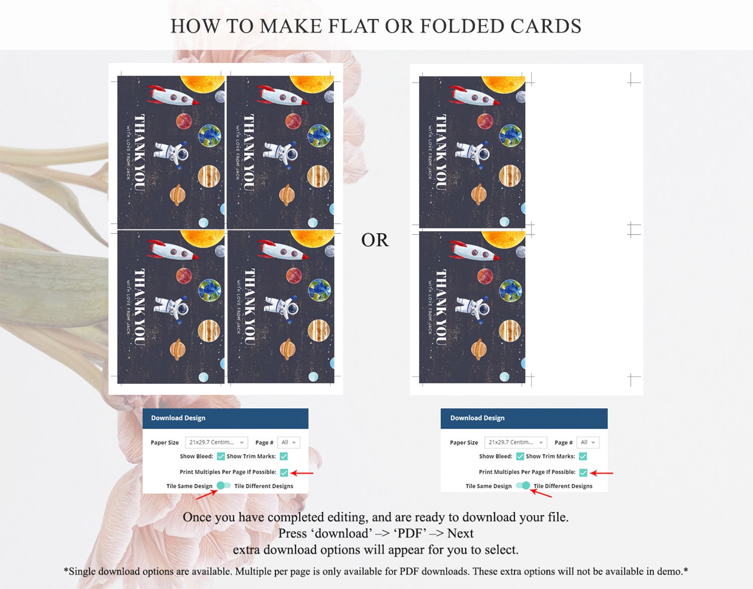 • Custom changes to artwork are not provided on existing templates.