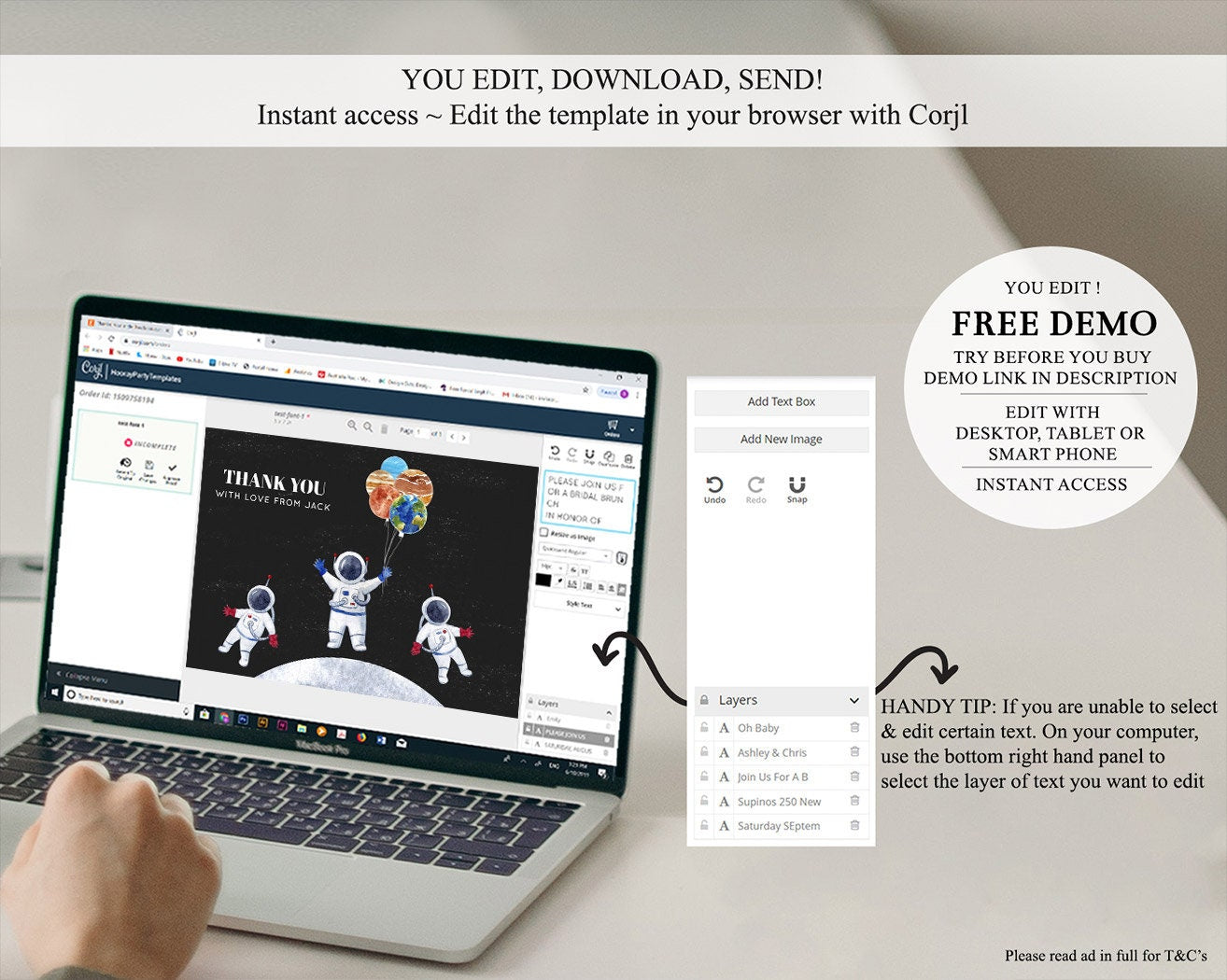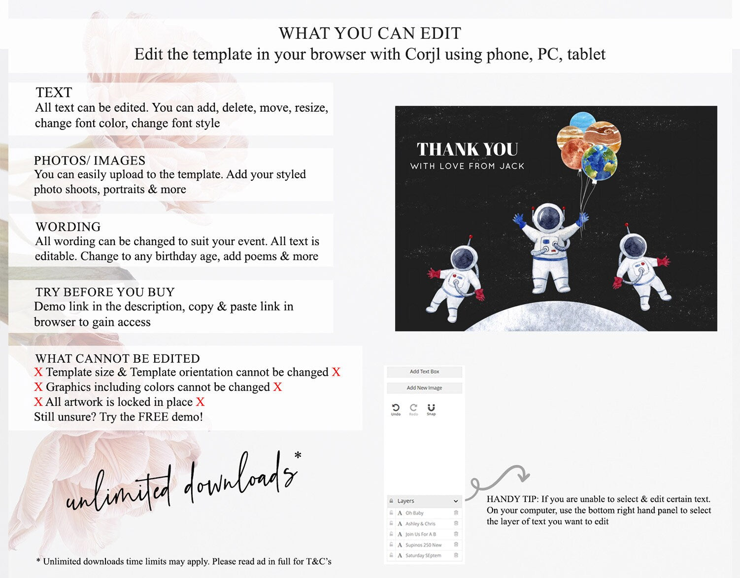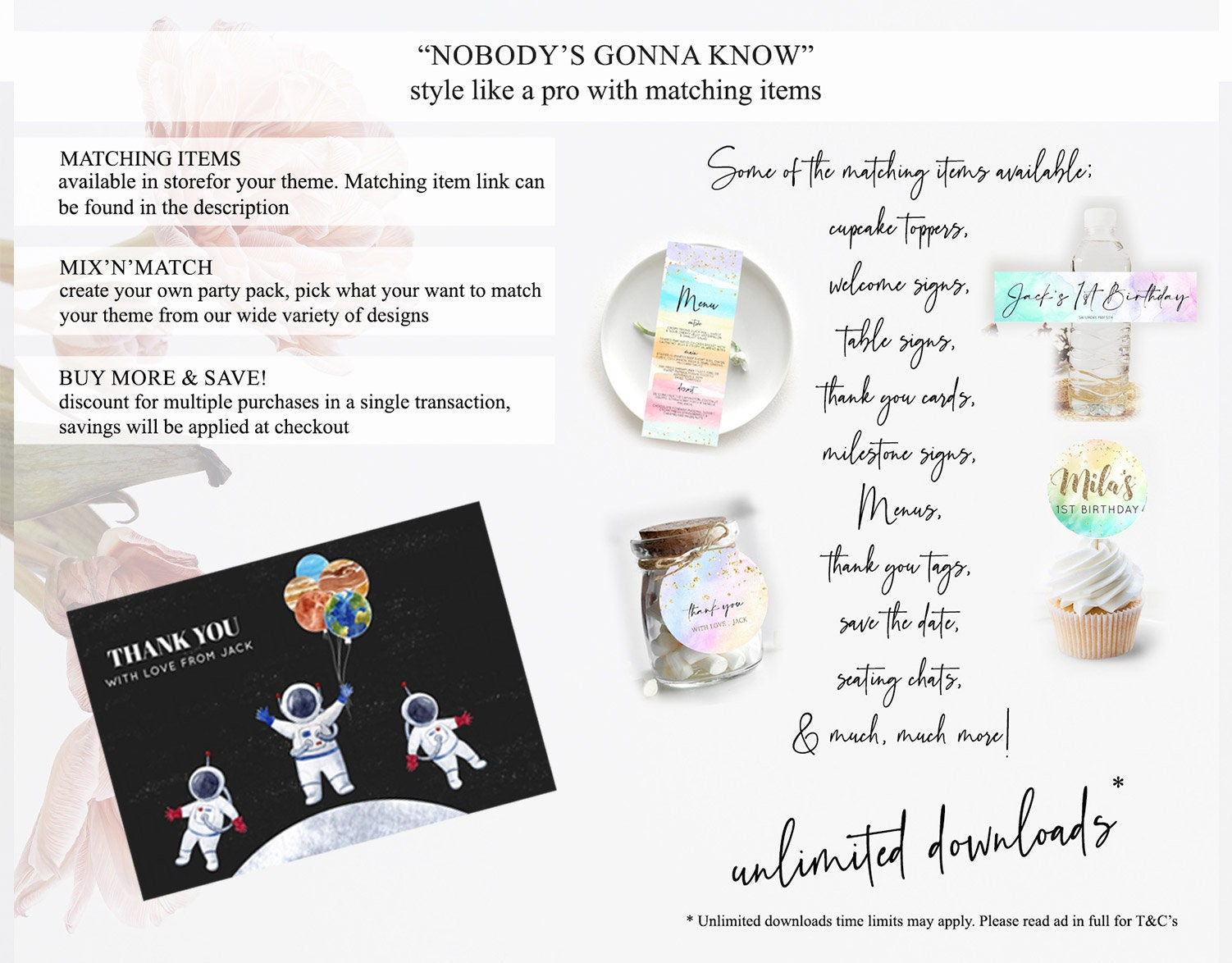 Space Thank You Space Thank You Card First Trip Around the Sun Thank You Card Planets Solar System First Birthday Thank You Cards D10430