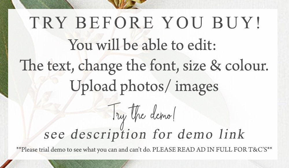 •We are unable to provide a refund/ exchange on commenced & completed work, instant downloads or self-editing link templates.