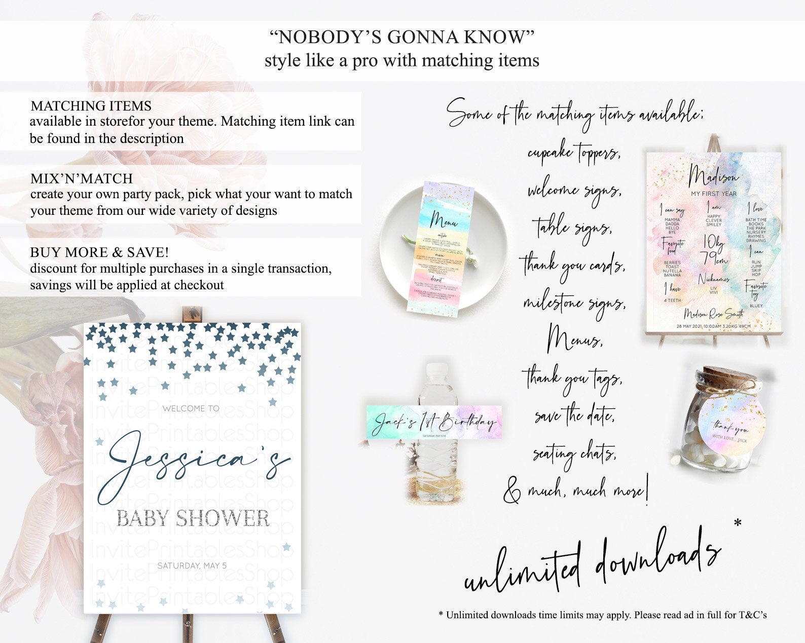 Star Baby Shower Welcome Board Pastel Stars Welcome Sign Shooting Star Rainbow Colorful Confetti Twinkle Little Star Welcome Sign D10308