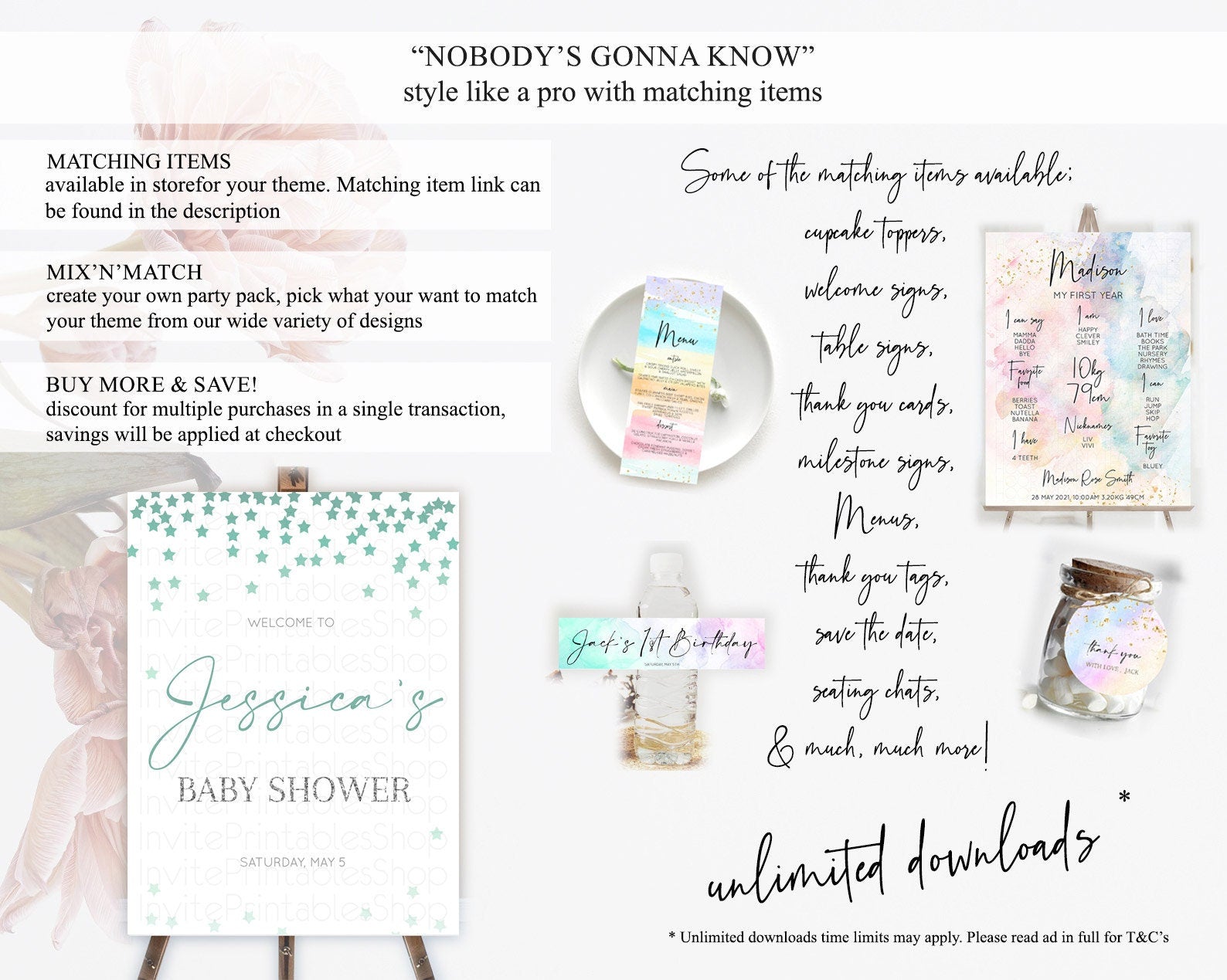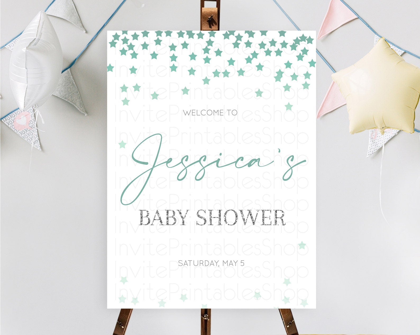 Star Baby Shower Welcome Board Pastel Stars Welcome Sign Shooting Star Rainbow Colorful Confetti Twinkle Little Star Welcome Sign D10310