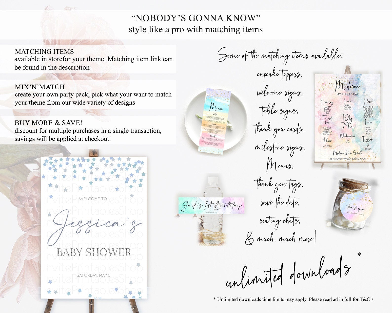 Star Baby Shower Welcome Board Pastel Stars Welcome Sign Shooting Star Rainbow Colorful Confetti Twinkle Little Star Welcome Sign D10341