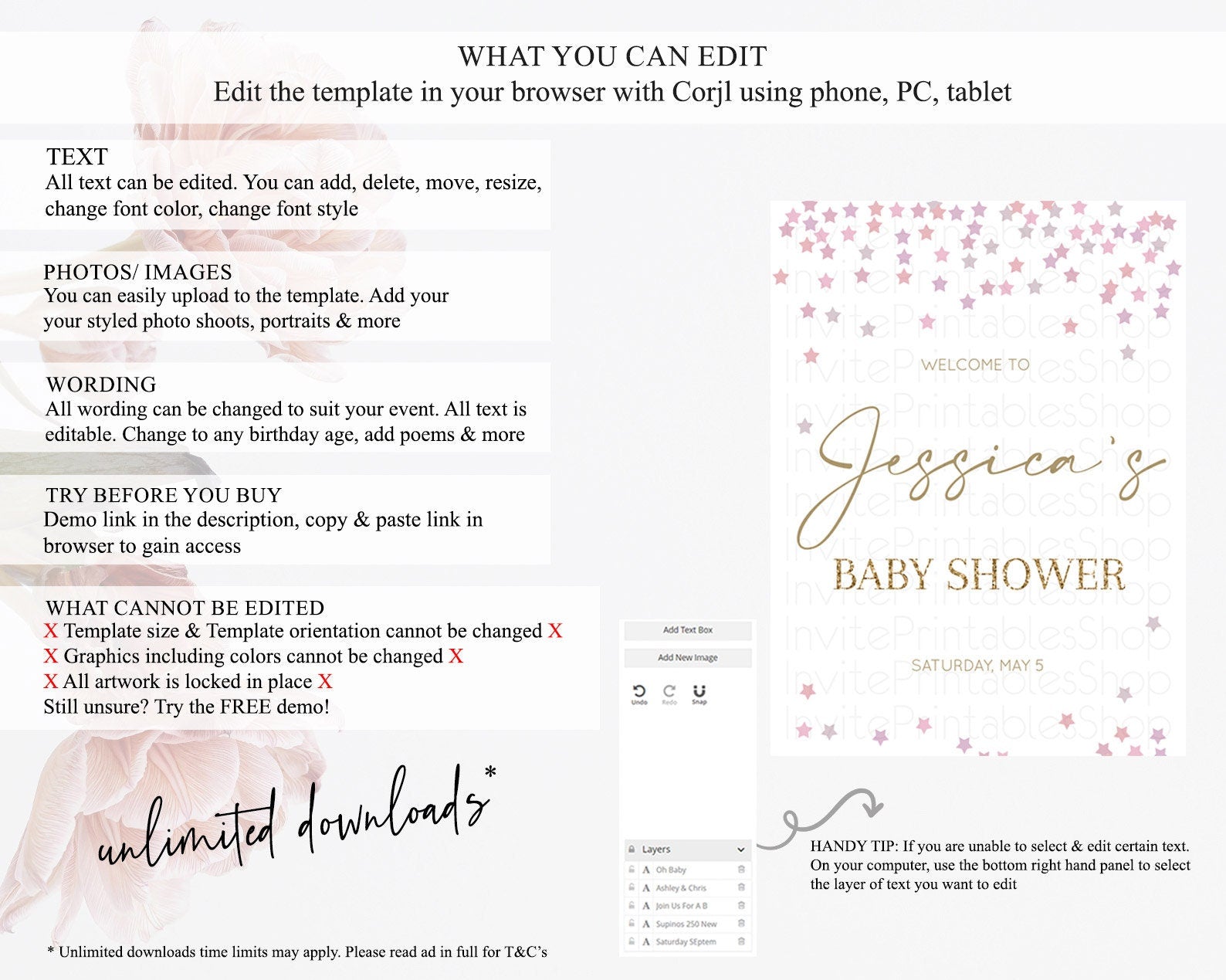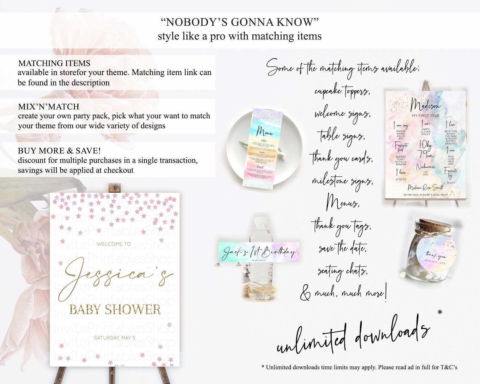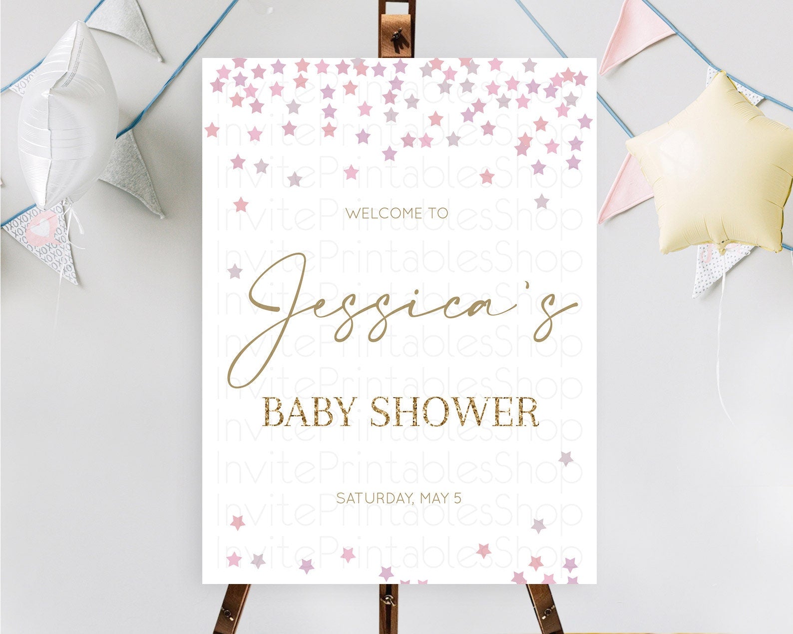 Star Baby Shower Welcome Board Pastel Stars Welcome Sign Shooting Star Rainbow Colorful Confetti Twinkle Little Star Welcome Sign D10344