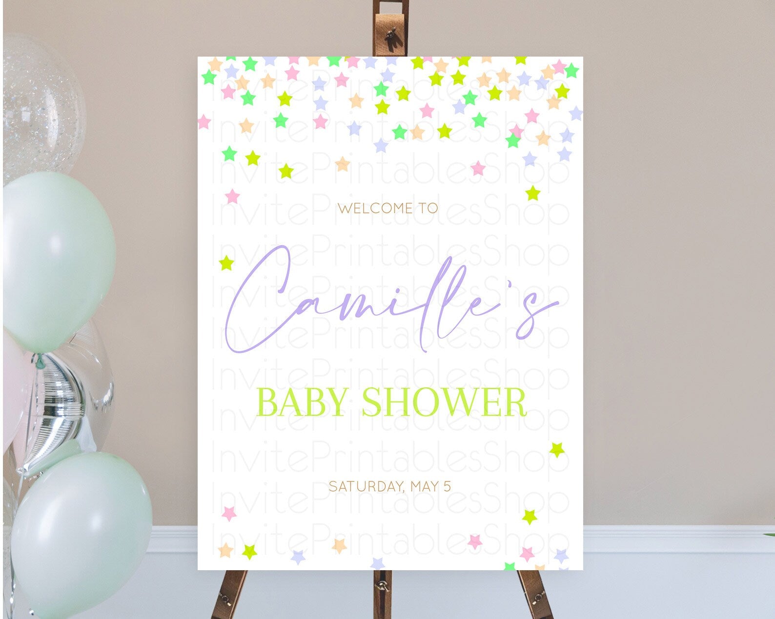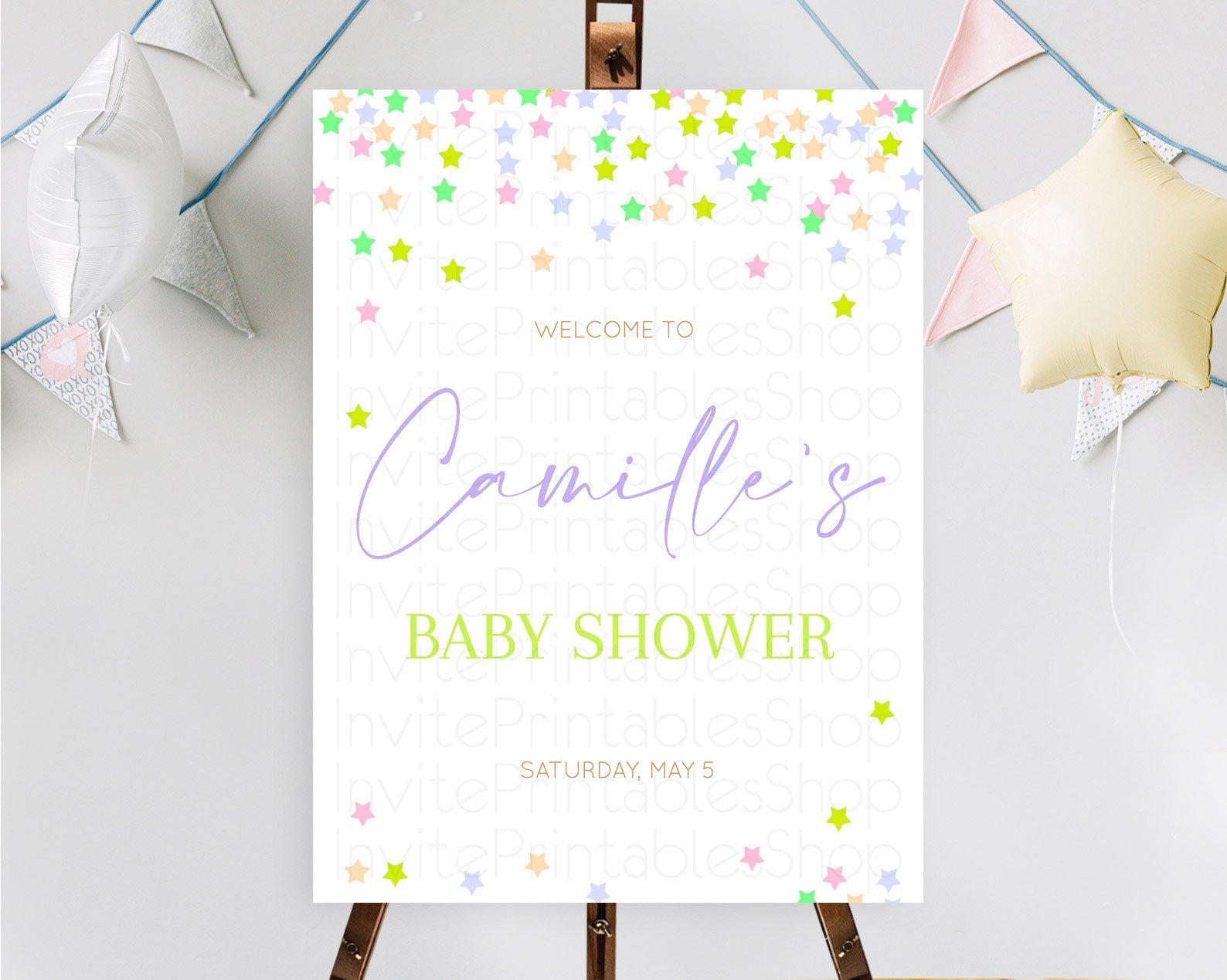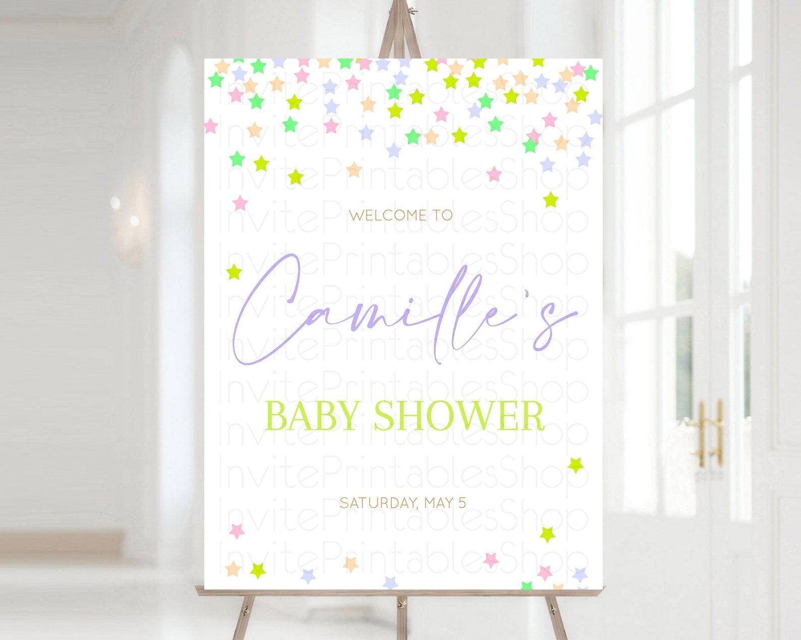 Star Baby Shower Welcome Board Pastel Stars Welcome Sign Shooting Star Rainbow Colorful Confetti Twinkle Little Star Welcome Sign D10396