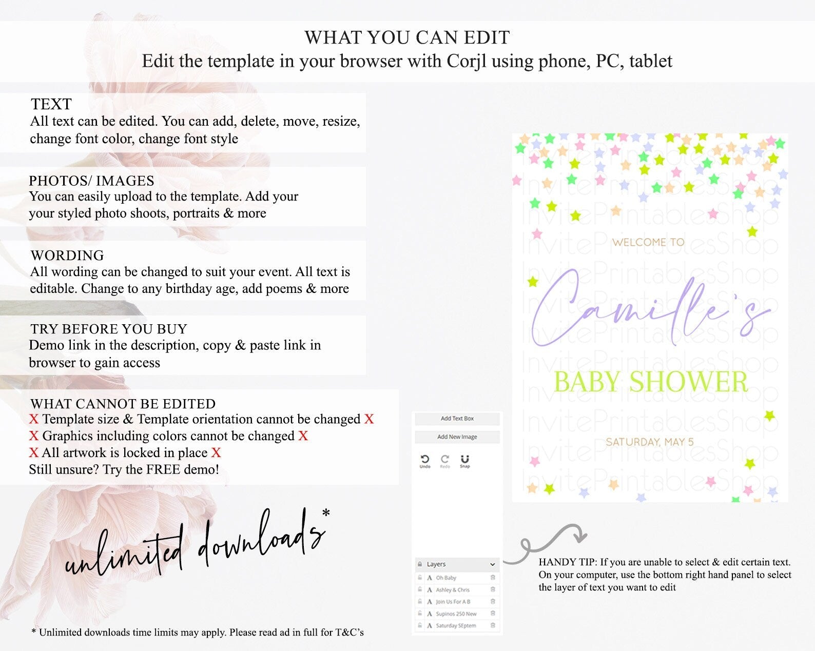 • After purchase, Corjl emails your editing link. Allow up to 15 minutes for delivery.