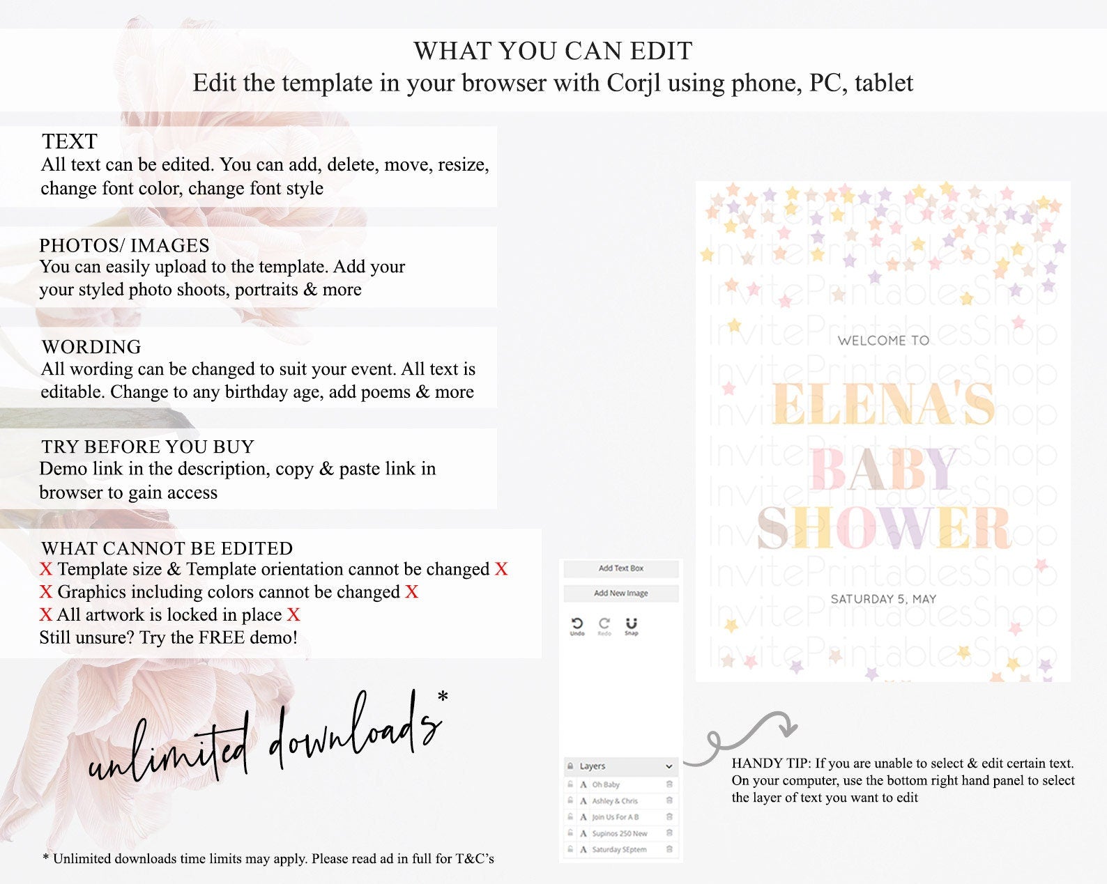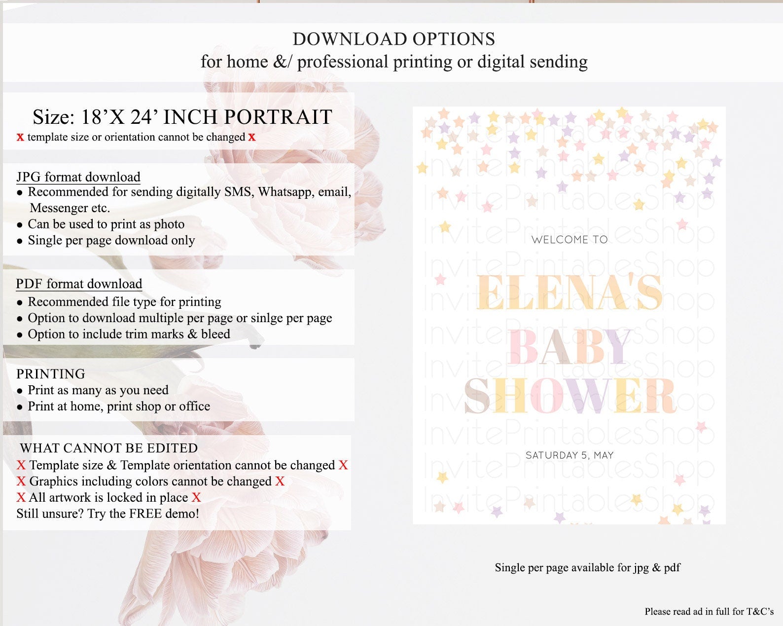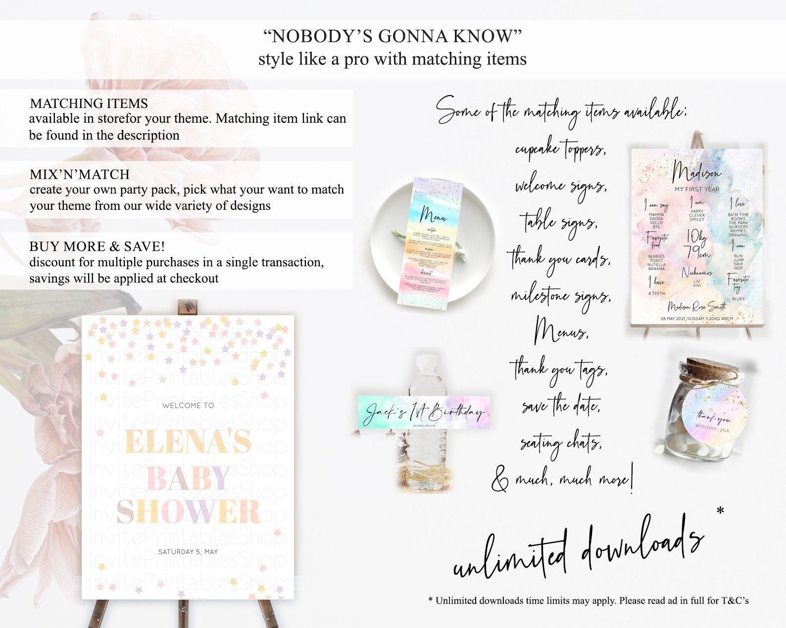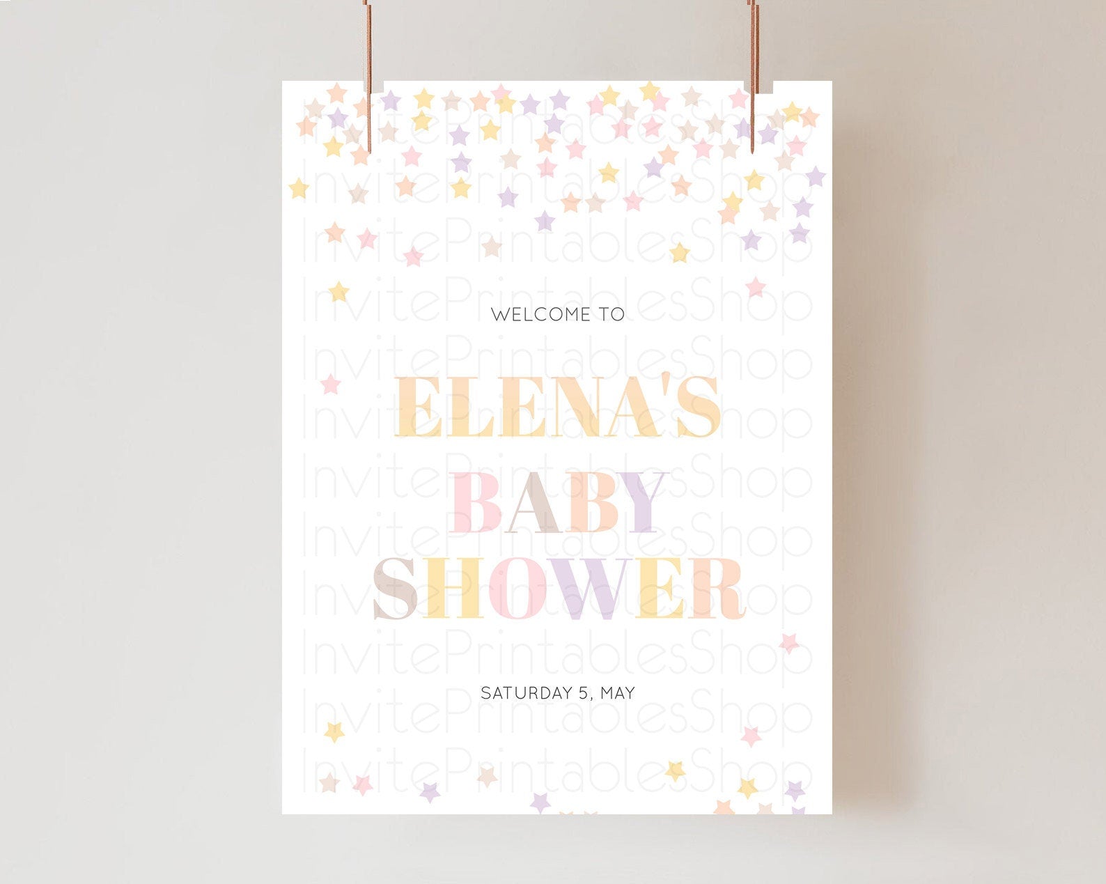 Star Baby Shower Welcome Board Pastel Stars Welcome Sign Shooting Star Rainbow Colorful Confetti Twinkle Little Star Welcome Sign D10810